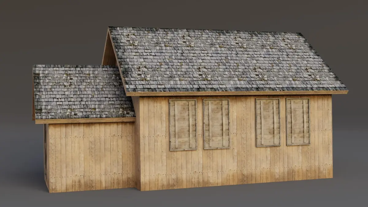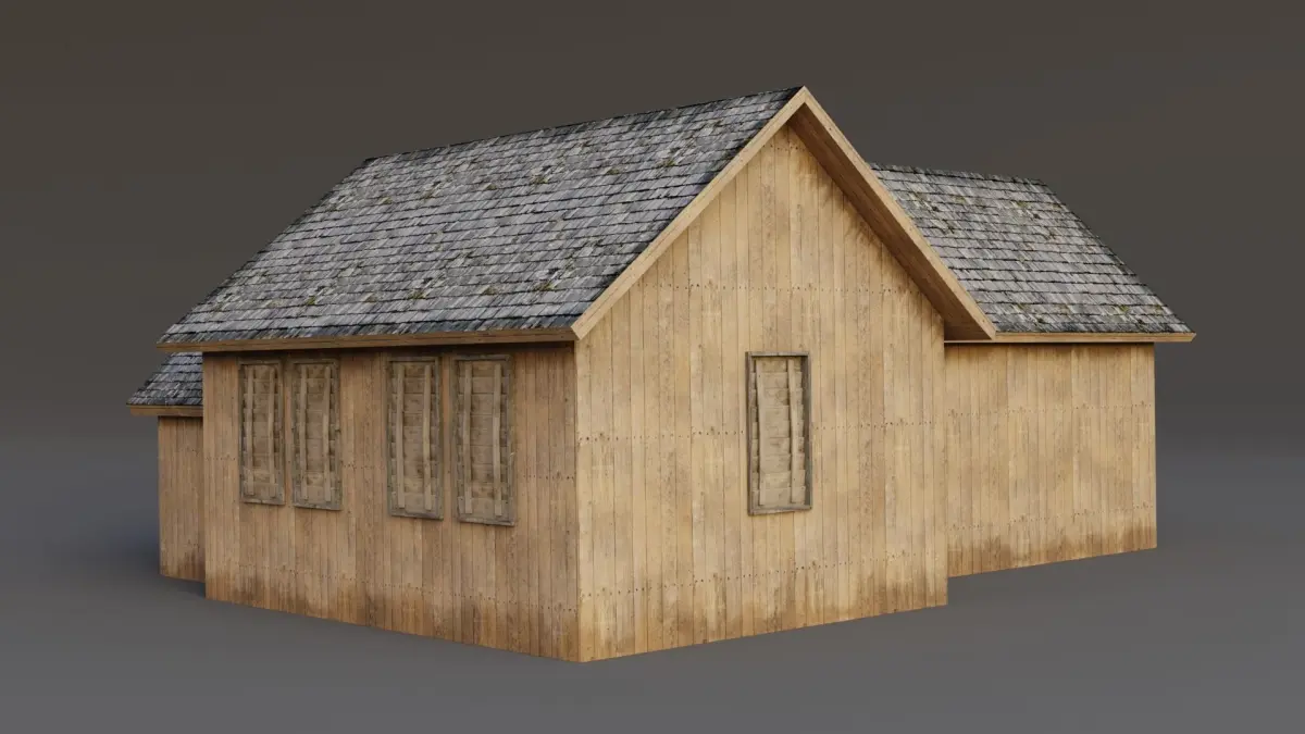Old Wooden House Vintage with real world measurements. 3D model with well-organized mesh, few polygons and some ngons. Model with PBR materials, textures, non-overlapping UV Layout map.