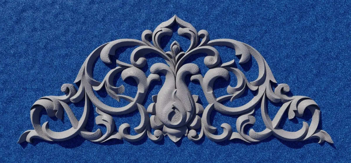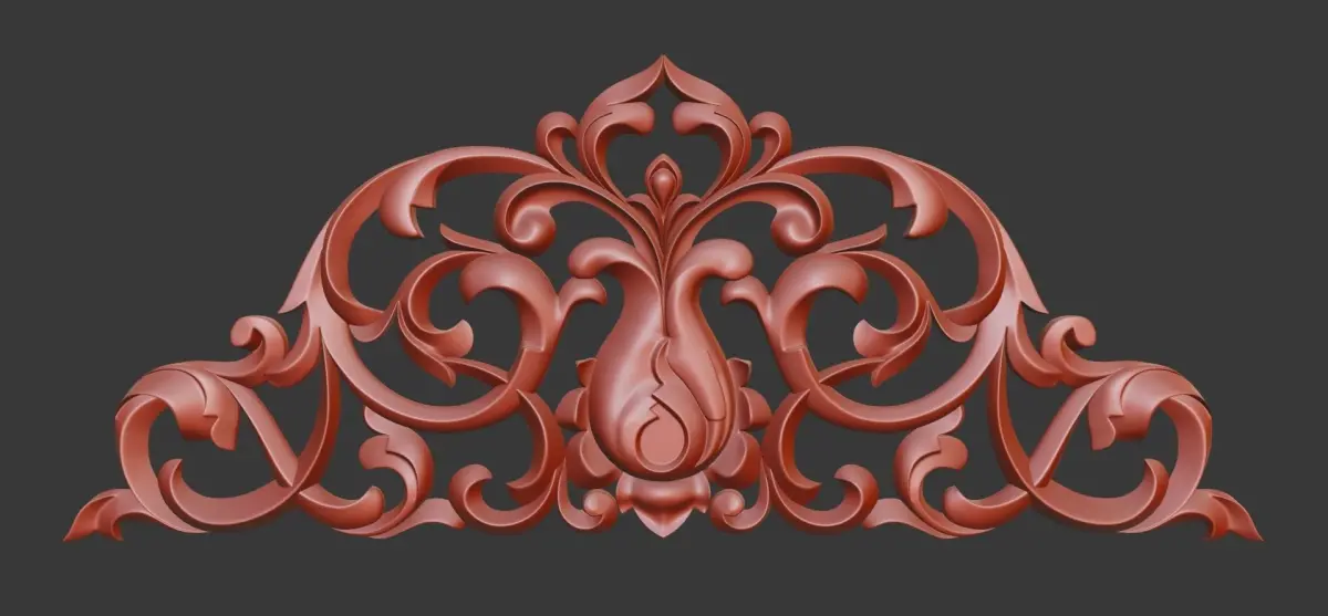 A piece of wooden ornament in highpoly STL file format ready for machining to be carved.