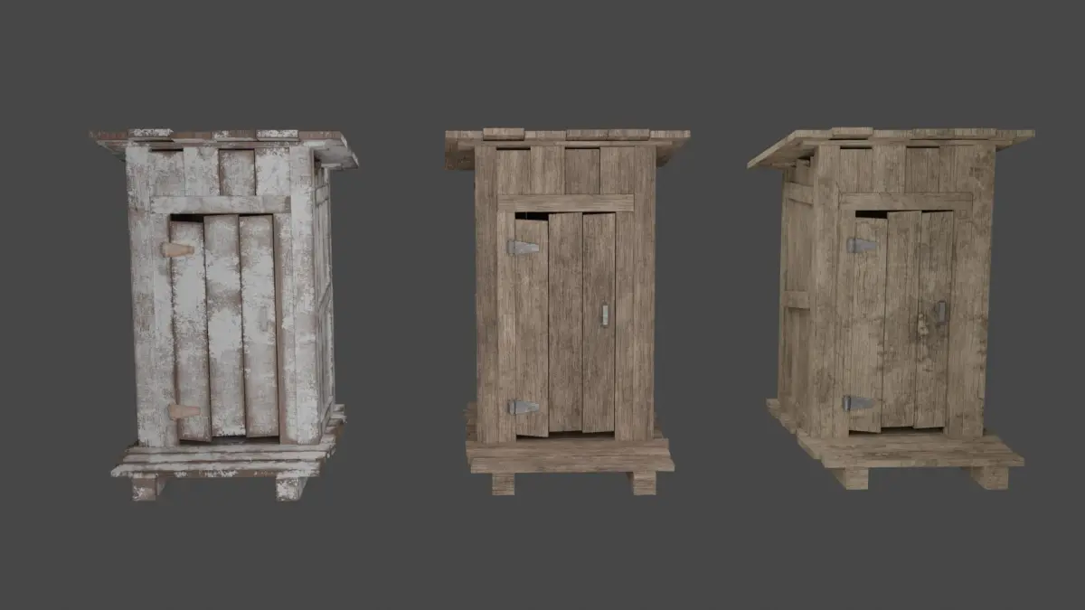 Outhouse with 3 different textures to choose from. Originally created in Blender 3.1 using cycles renderer.Textures (4096 x 4096) png, include :