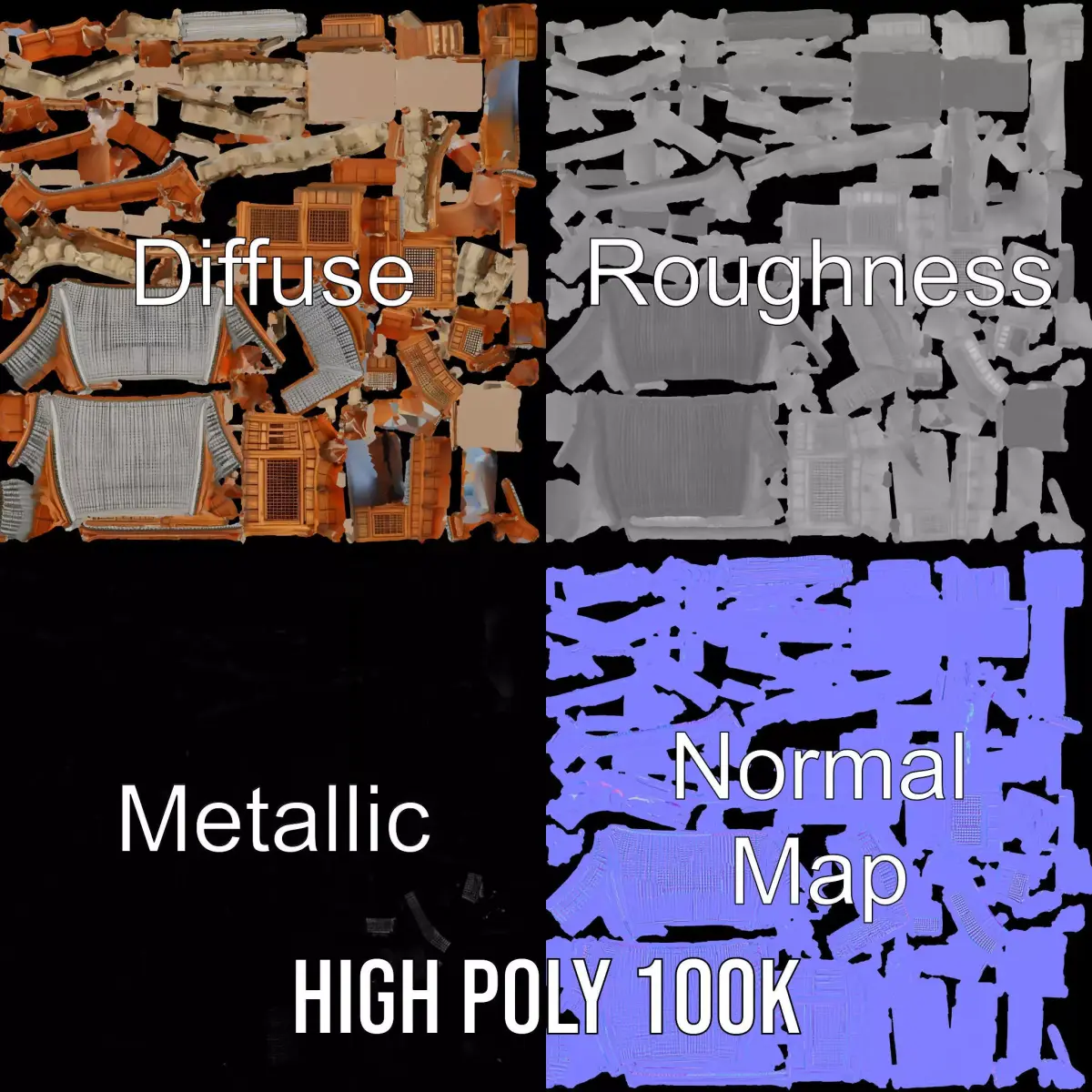 This 3D model pack features a beautifully crafted wooden pagoda architecture, highlighting intricate design and cultural aesthetics. Perfect for historical visualizations, game environments, and architectural projects. Each model has 3 levels of detail: low-poly (1000 triangles for mobile), middle-poly (10,000 triangles for environment), and high-poly (100,000 triangles), which allows for the use of this model in production rendering (such as 3ds max, Maya, Cinema4d, Blender, Vray/Corona/Cycles, and all others), game engines (Unity and Unreal compatible), and interactive presentations, providing a choice of detail based on the LOD System principle. Textures are PBR, Diffuse, NormalMap, and reflection/roughness/metallic, suitable for any modern rendering engine. All models are accurately unwrapped and have no overlapping UVs. All textures are 4096x4096 in size. Ideal for rendering serene Asian-inspired environments or historic simulations. If you like the model, please leave a review or comment.