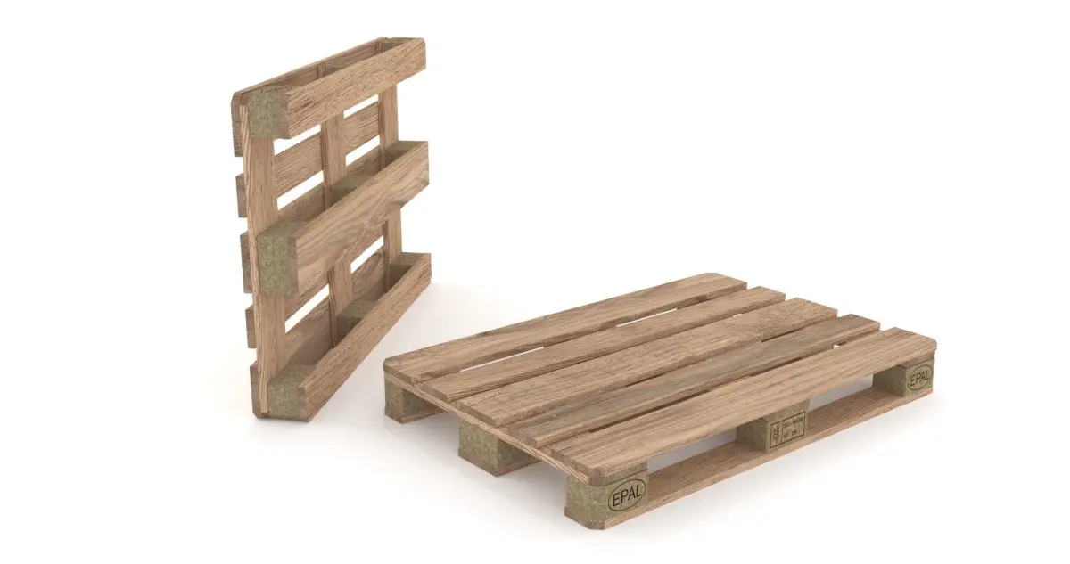A low/medium poly 3d model of a wooden pallet, modeled in actual measurements (metrics). All parts and materials are properly named and organized.