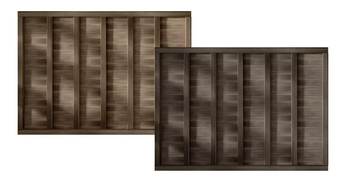 A high-quality 3D model of a panel made from wide wooden slats with vertical structural elements, ideal for modern interiors, loft, and office spaces. This versatile panel can be used both as ceiling cladding and a decorative wall accent in living rooms, bedrooms, or lobbies, adding warmth and texture to the space.