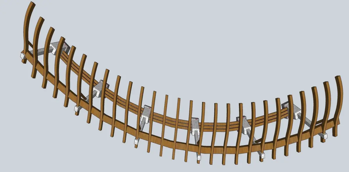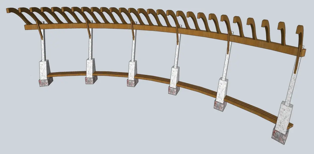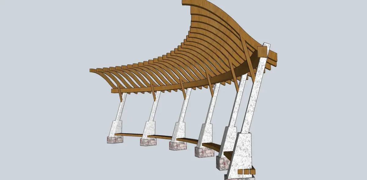 wooden pargola in curve sketchup model