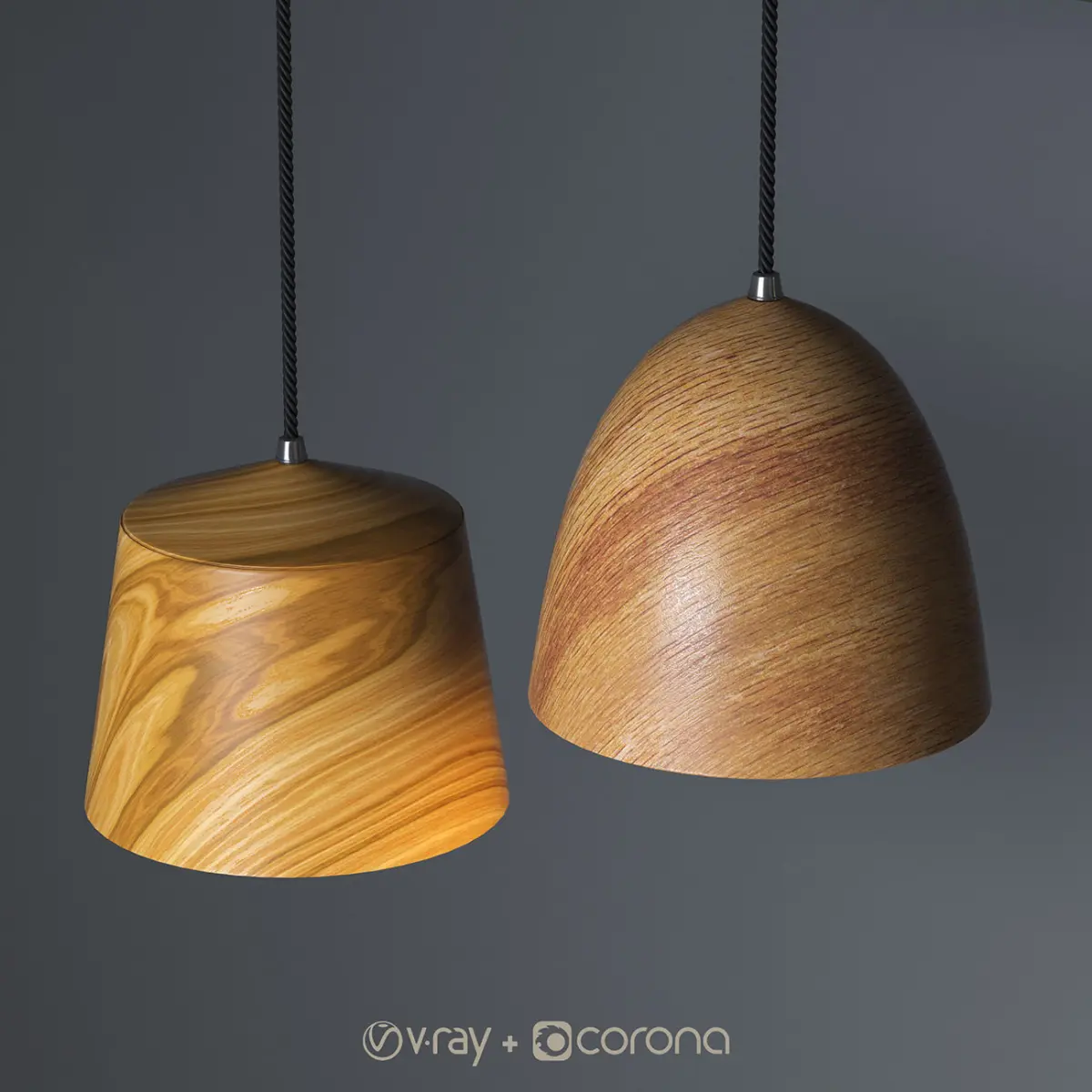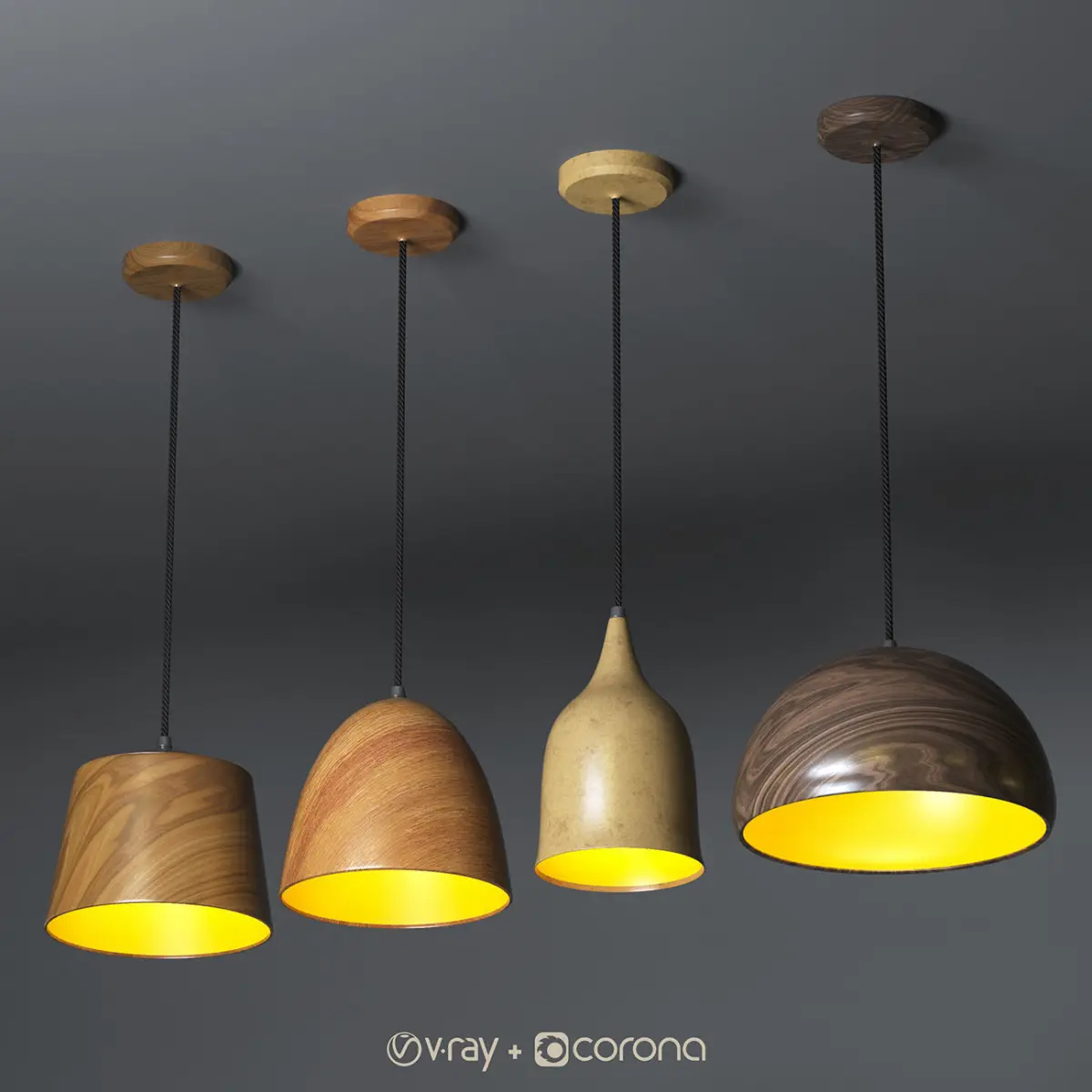 4 X Wooden Pendant Lights