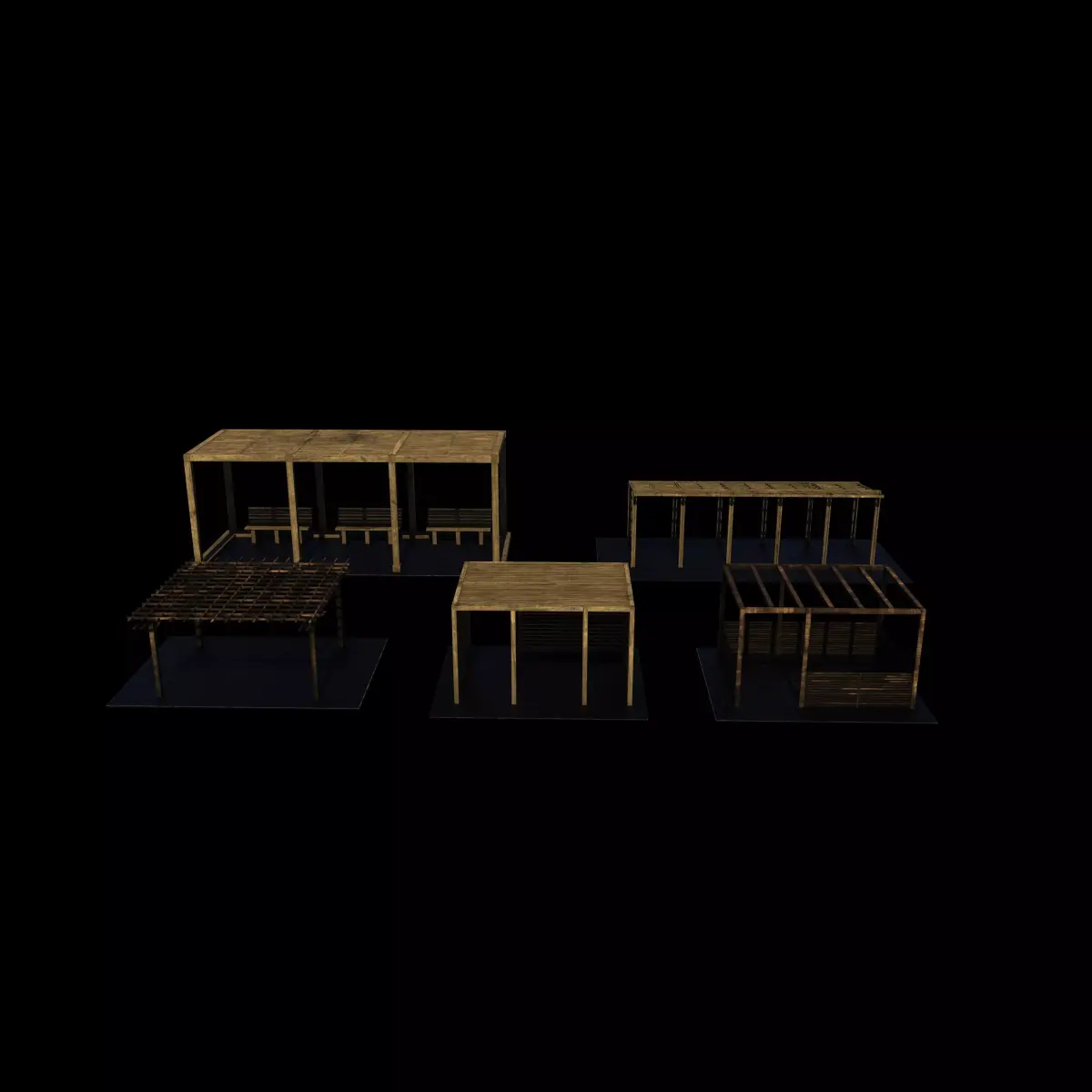 Wooden pergola set.obj OBJ (.obj, .mtl) 2022