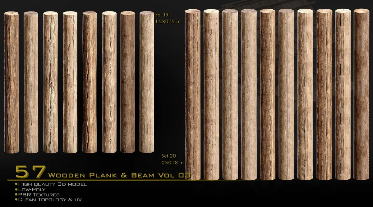 Add realistic and high-quality wooden elements to your 3D scenes with this handcrafted pack of planks and beams. Perfect for environment design, games, films, and architectural visualization.