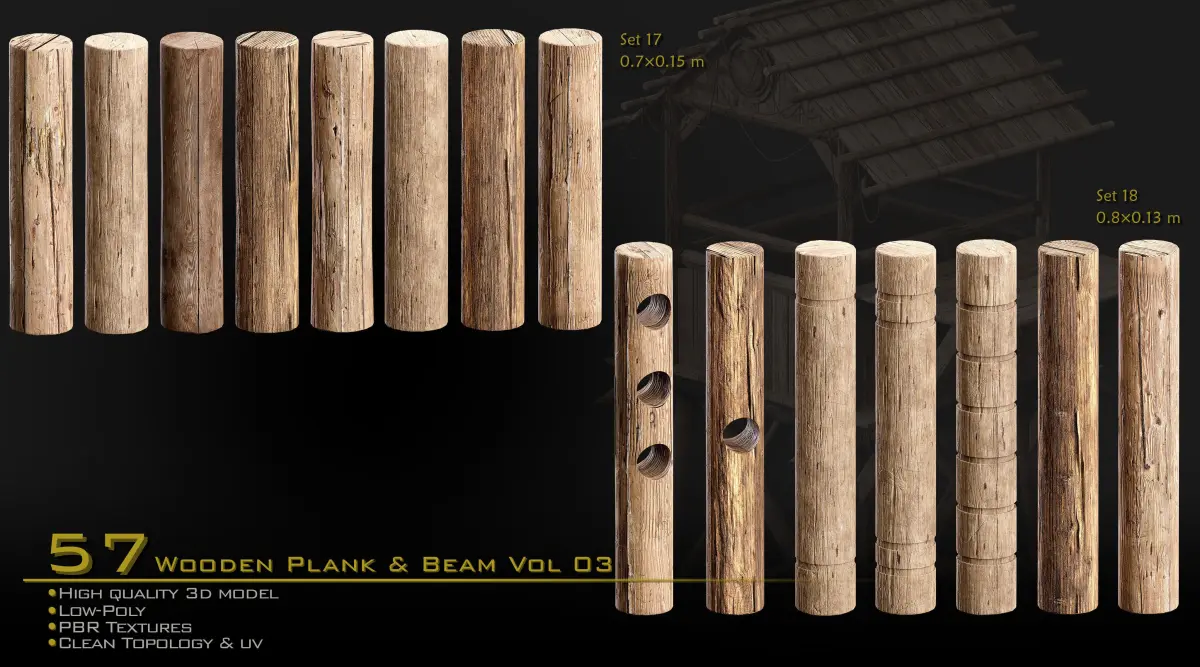 Wooden Plank & Beam Vol.03 – 3D Asset Pack