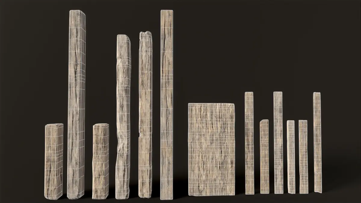 This is high quality low-poly game asset for first-person games or third view. These old planks and balks can be used for modern, medieval or any other game scene. 4K textures/2 materials.