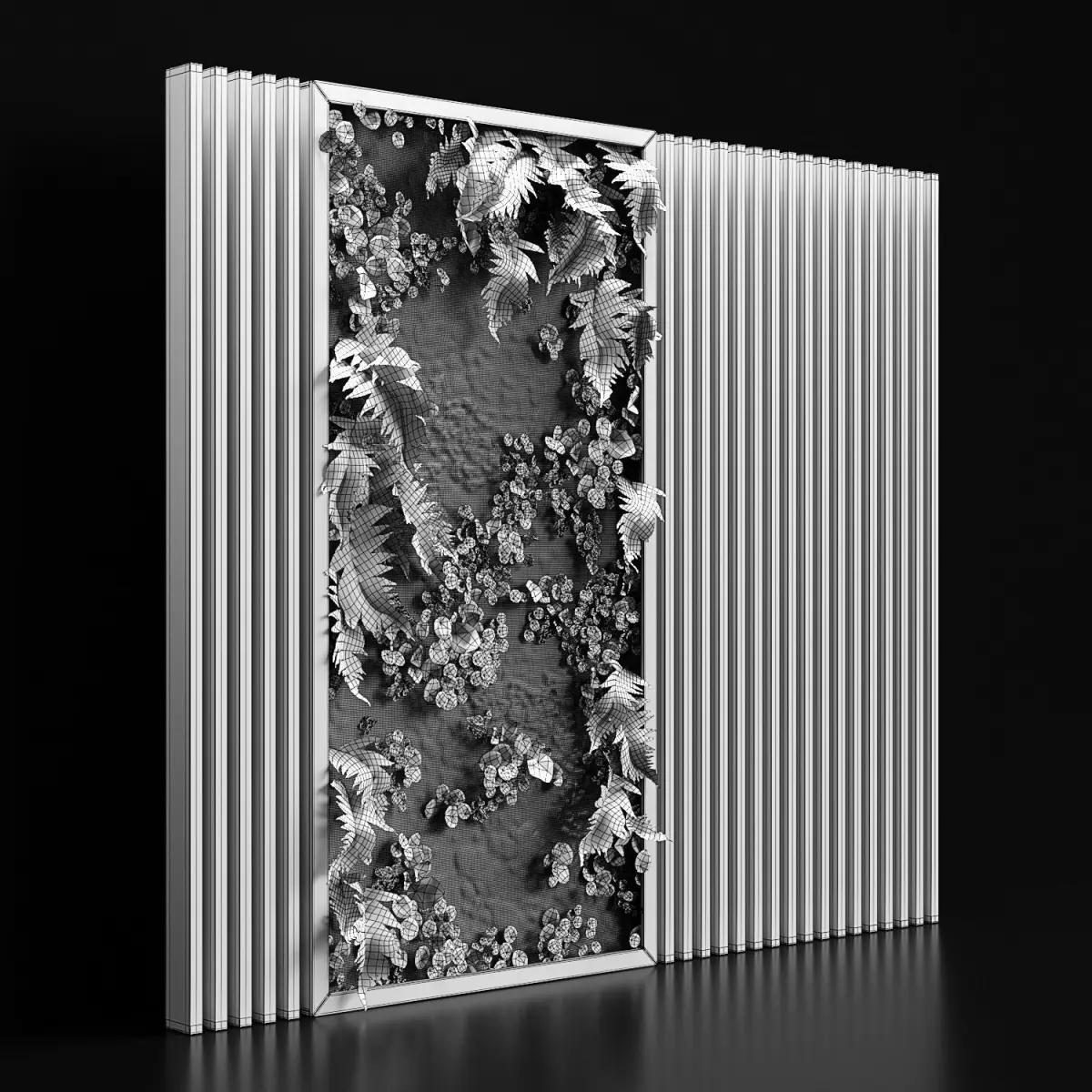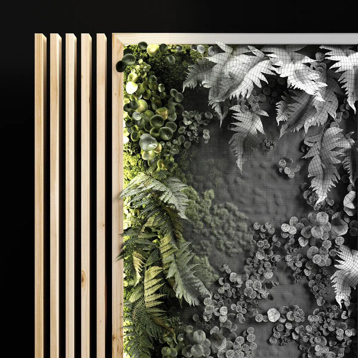 Wooden slats and phytowall with LED lighting. Suitable for interiors in a modern style and for interiors in a loft style