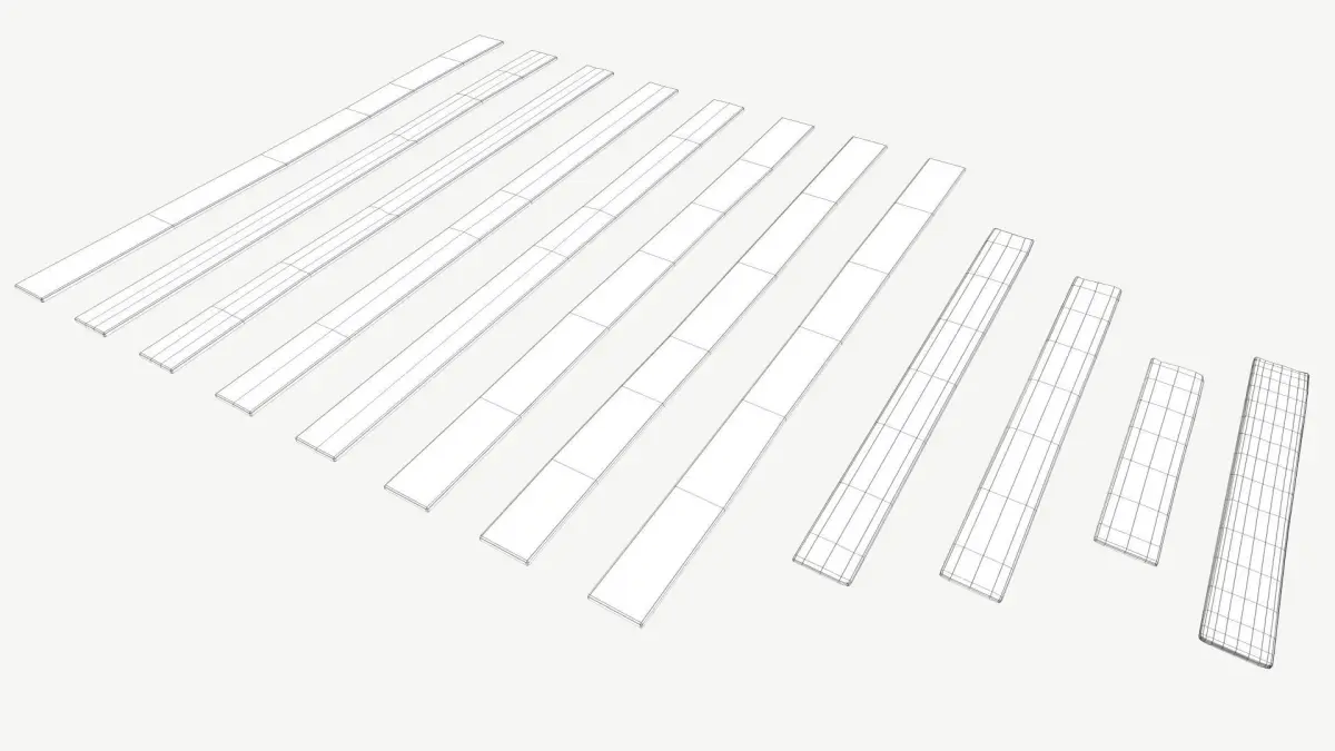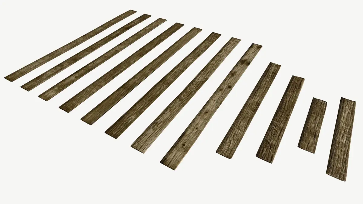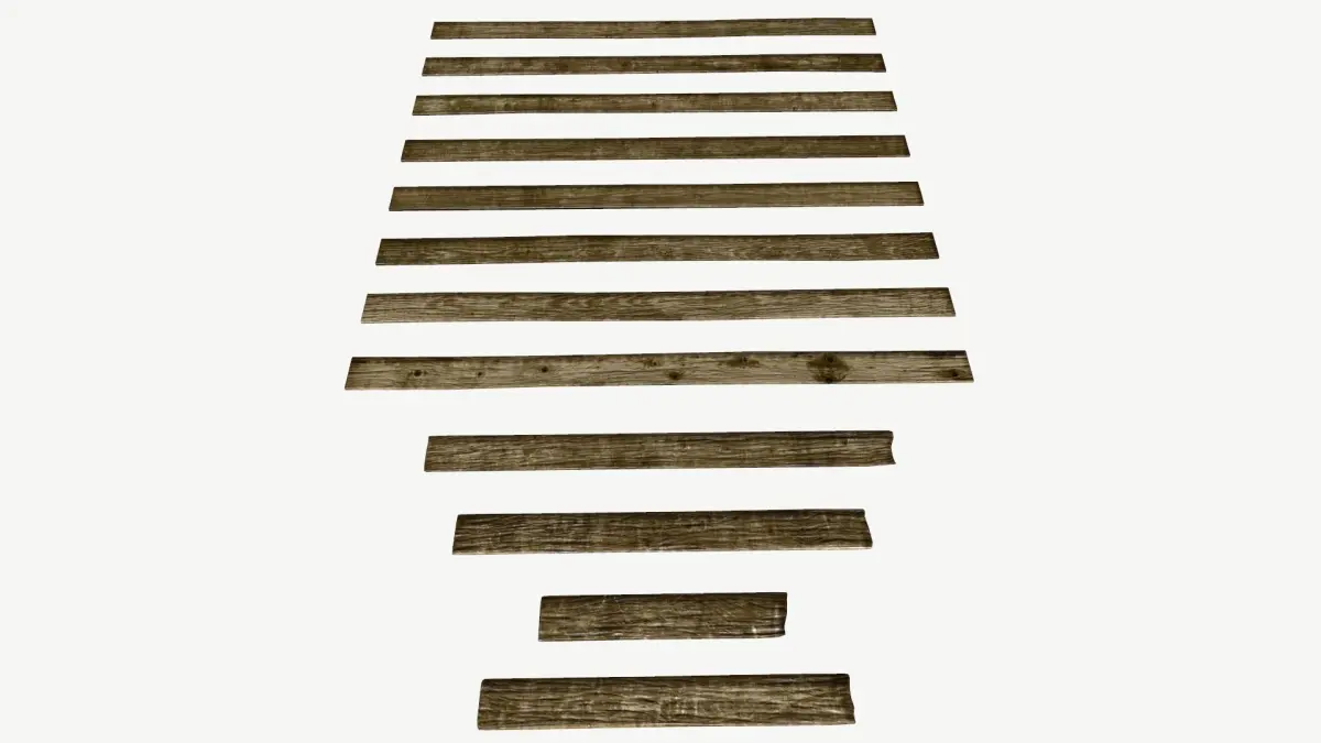 A set of Wooden planks for assembling a floor. 8 unique standard planks and 4 broken ones if creating a derelict look.