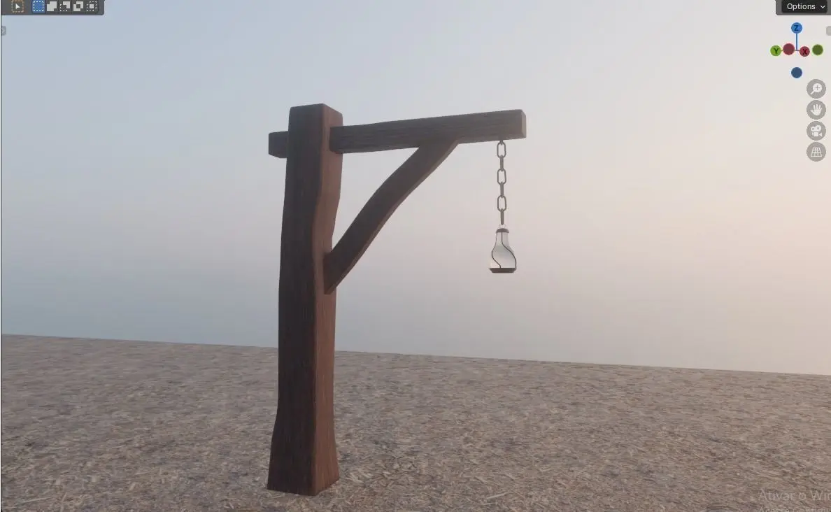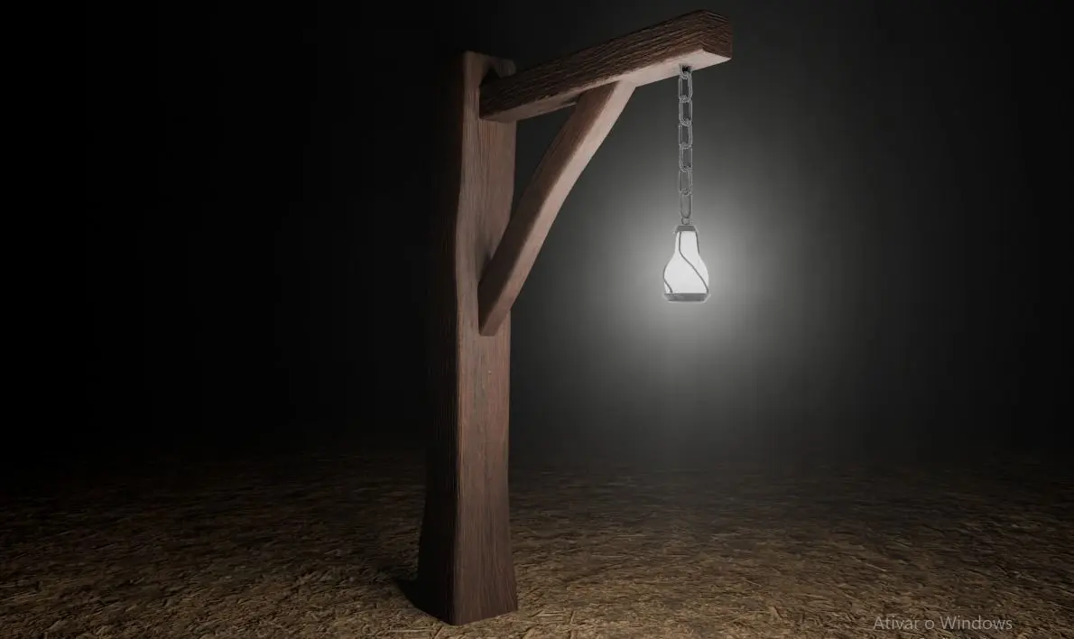 A simple wooden lamp post, the lamp is held by a chain. the model can be used in Blender projects, games or animations. Low-poly model, pbr-textures, UV mapping. The materials (color, normal map, roughness, displacement, ambient occlusion) are inside the folder textures.