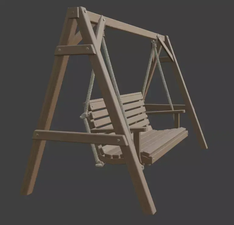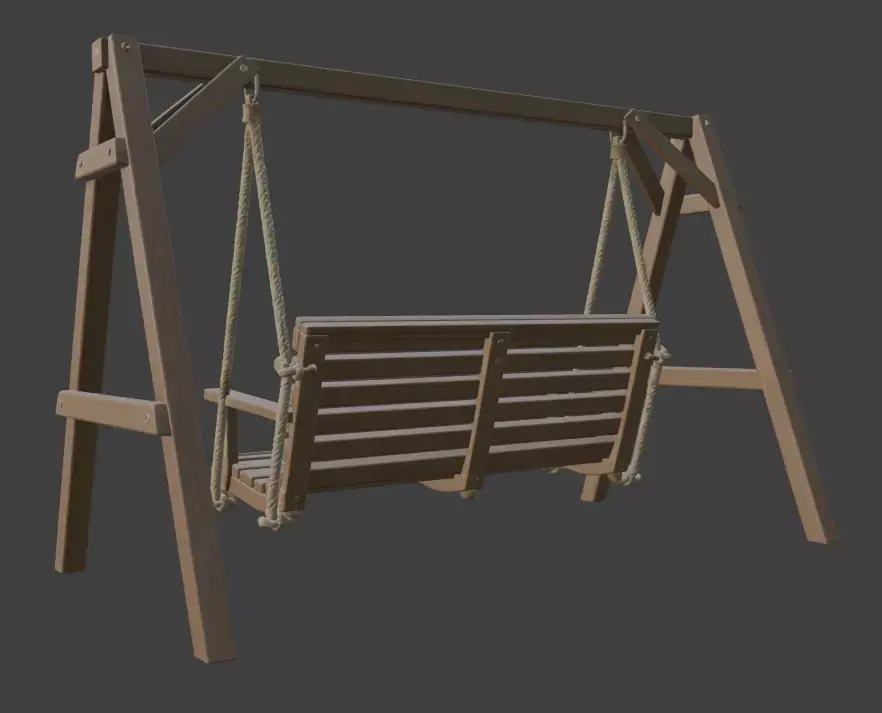 Discover this stunningly realistic wooden porch swing 3D model, perfect for architectural visualization, game development, renders, and garden scenes. Crafted with meticulous detail, this classic A-frame swing features a sturdy wooden frame, natural rope suspension, and a comfortable slatted bench seat. The model includes high-quality PBR textures for photorealistic results in any engine or software. Ideal for outdoor furniture projects, cozy backyard concepts, or cozy cabin environments. Ready for immediate use in Blender, Maya, 3ds Max, Cinema 4D, Unreal Engine, Unity, and more. Includes multiple file formats (FBX, OBJ, STL, GLTF, USDZ) for seamless integration.