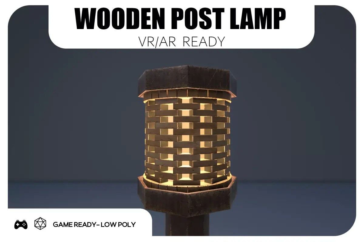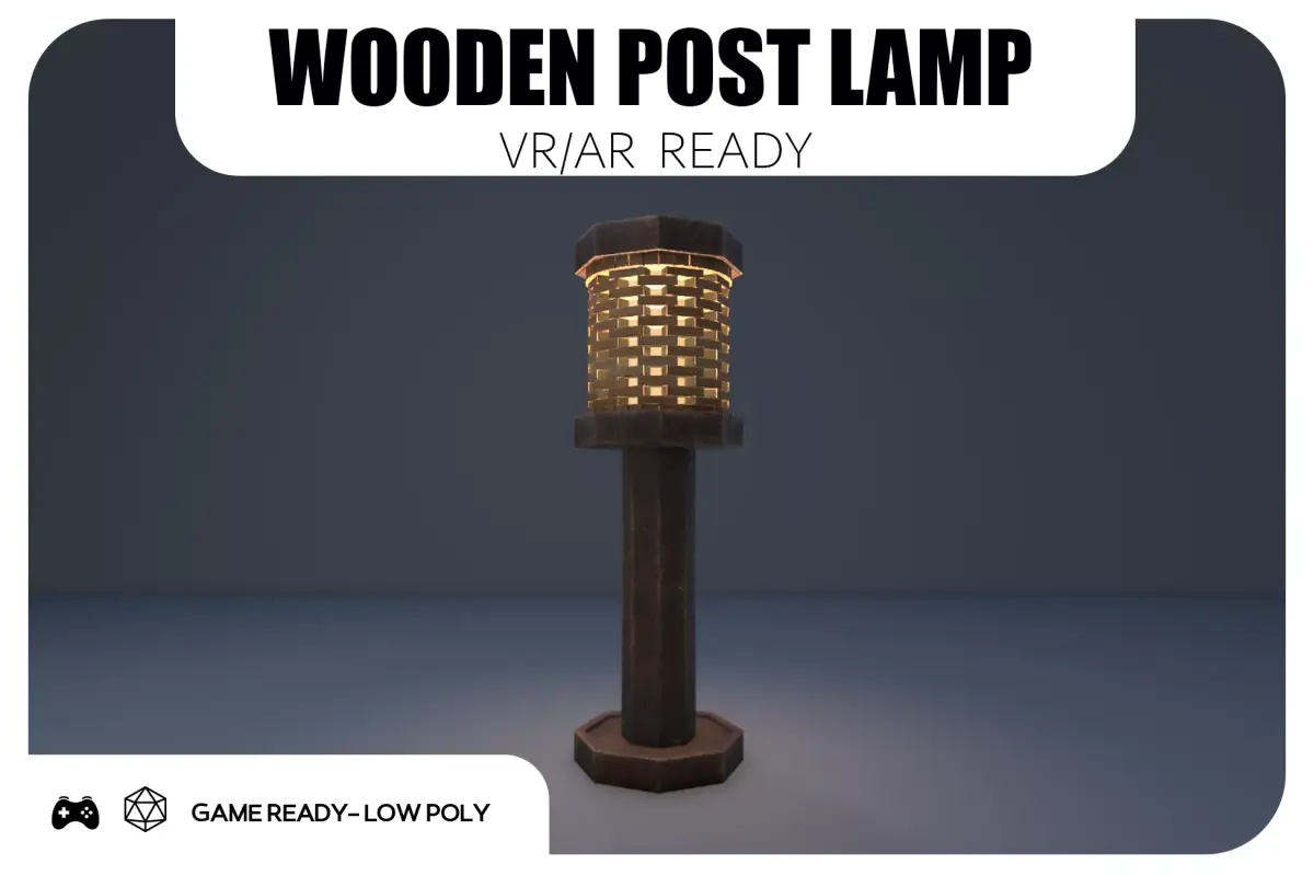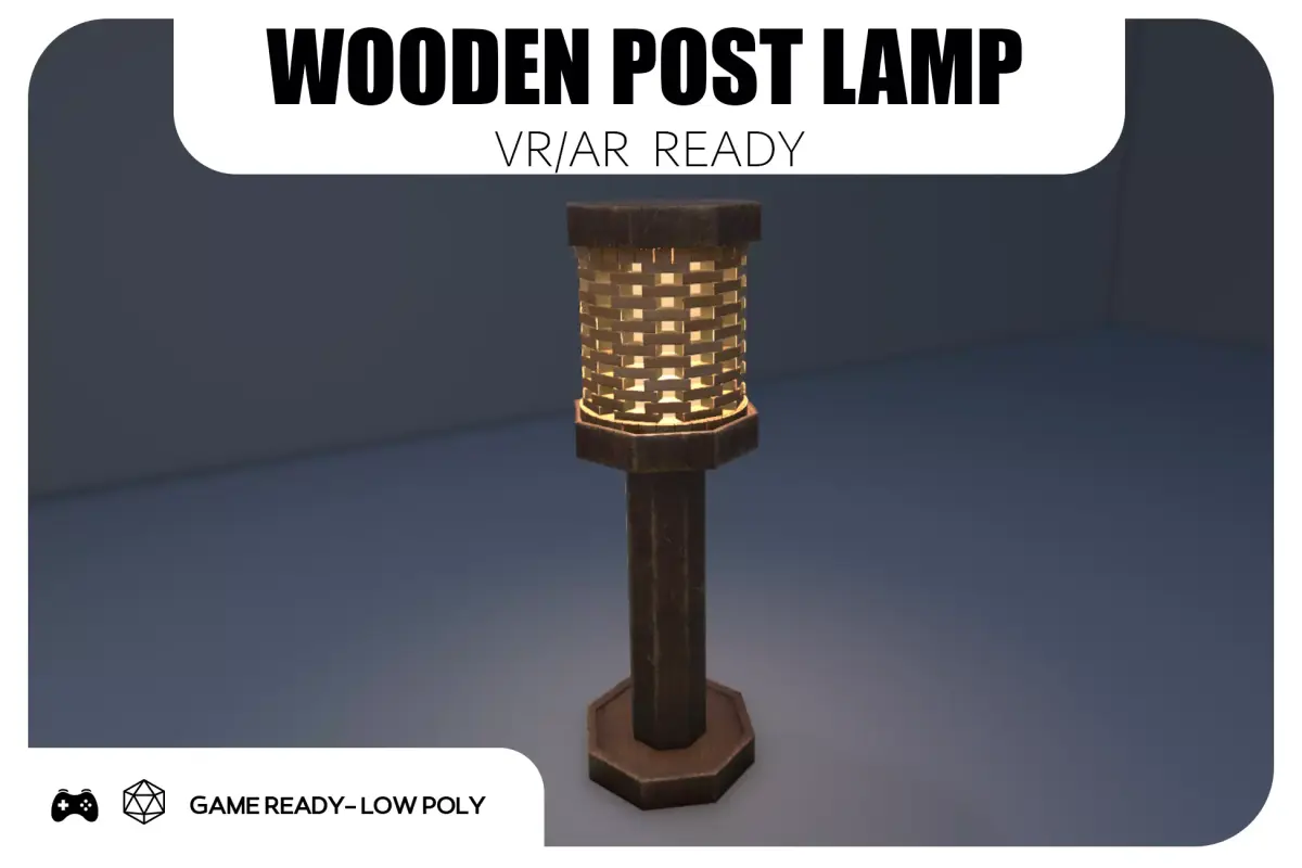 a sturdy wooden post with a woven lantern head and a warm glow. It’s built for real-time use—low-poly, clean topology, non-overlapping UVs, and PBR textures—so it drops straight into Unity (URP/HDRP) or Unreal and just works.