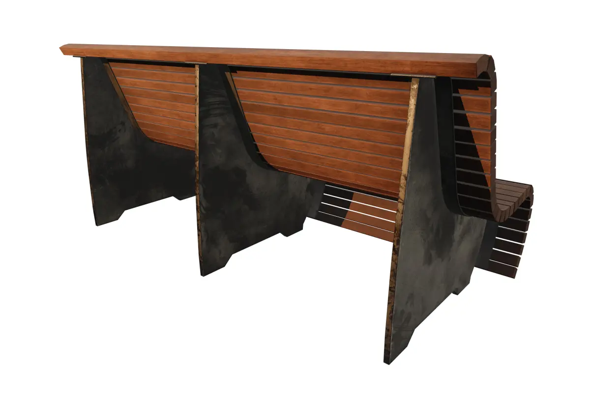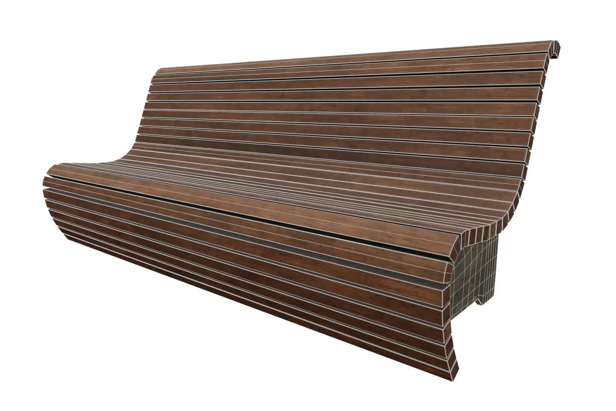 This is a detailed PBR (Physically Based Rendering) 3D model of a public bench designed for parks, plazas, and urban spaces. The bench features sturdy wooden slats for the seating surface and backrest, supported by a robust metal frame and base. The slatted design allows for comfortable seating and drainage. This model is ideal for architectural visualizations, urban planning projects, and creating realistic outdoor environments.