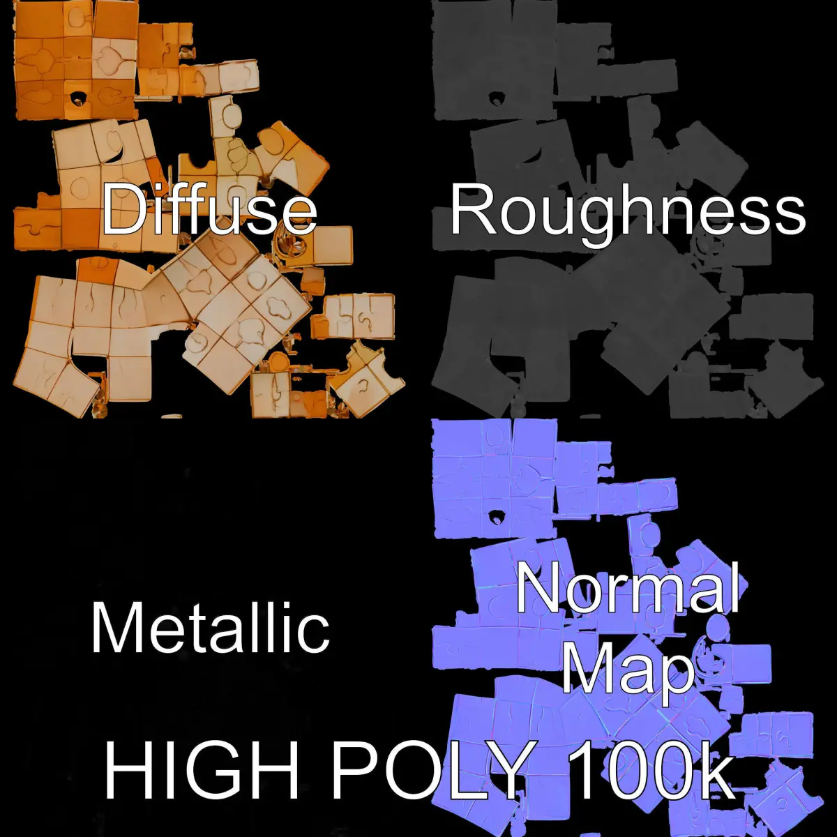 This Wooden Puzzle Cube Model Pack offers three levels of detail: low-poly for mobile (1000 triangles), middle-poly for environments (10,000 triangles), and high-poly for production rendering (100,000 triangles). Ideal for game engines like Unity and Unreal, this model is perfect for crafting realistic puzzles in games, architectural visualizations, and interactive displays. The textures are PBR, Diffuse, NormalMap, and reflection/roughness/metallic, ensuring suitability for all major rendering engines. Models are accurately unwrapped with no overlapping UVs. All textures are 4096*4096 in size. The first image is the reference used for creating the 3D model. It is important to carefully evaluate the quality of the model by examining the preview images that display the topology and polygonal mesh. These previews (WIRE and WEB 3D Preview) clearly demonstrate how accurately the model matches the original reference and how well the geometry has been executed. If you like the model, please leave a like and comment!