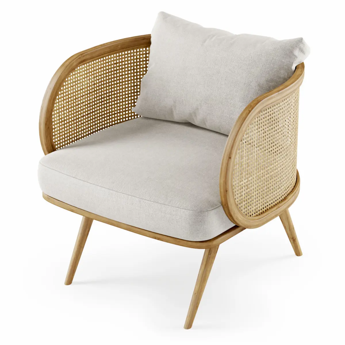 Wooden rattan lounge chair C20 3D model