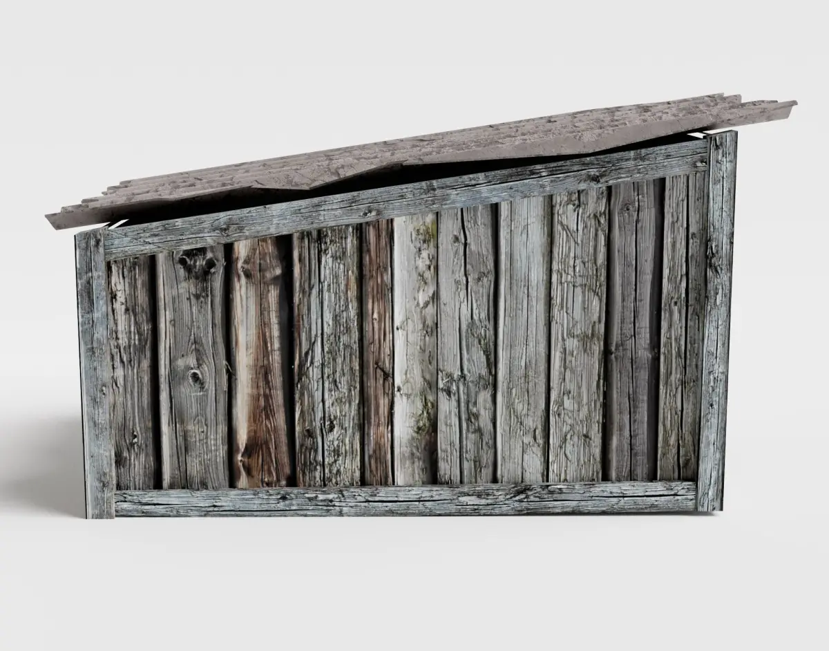 - This product consist one low polygon game ready model of *Wooden raw dog house damaged *