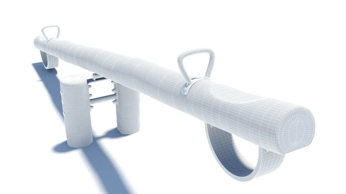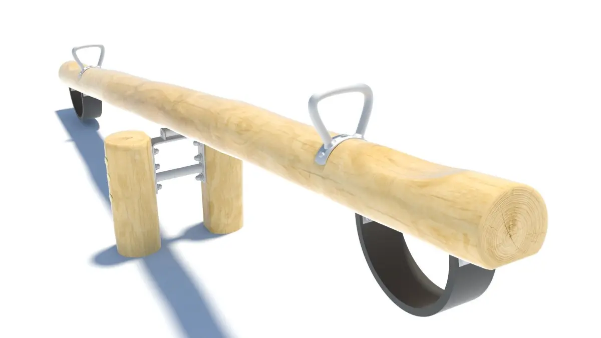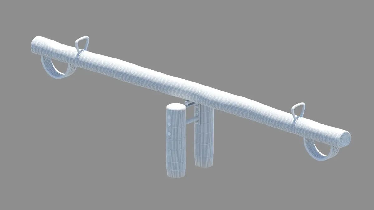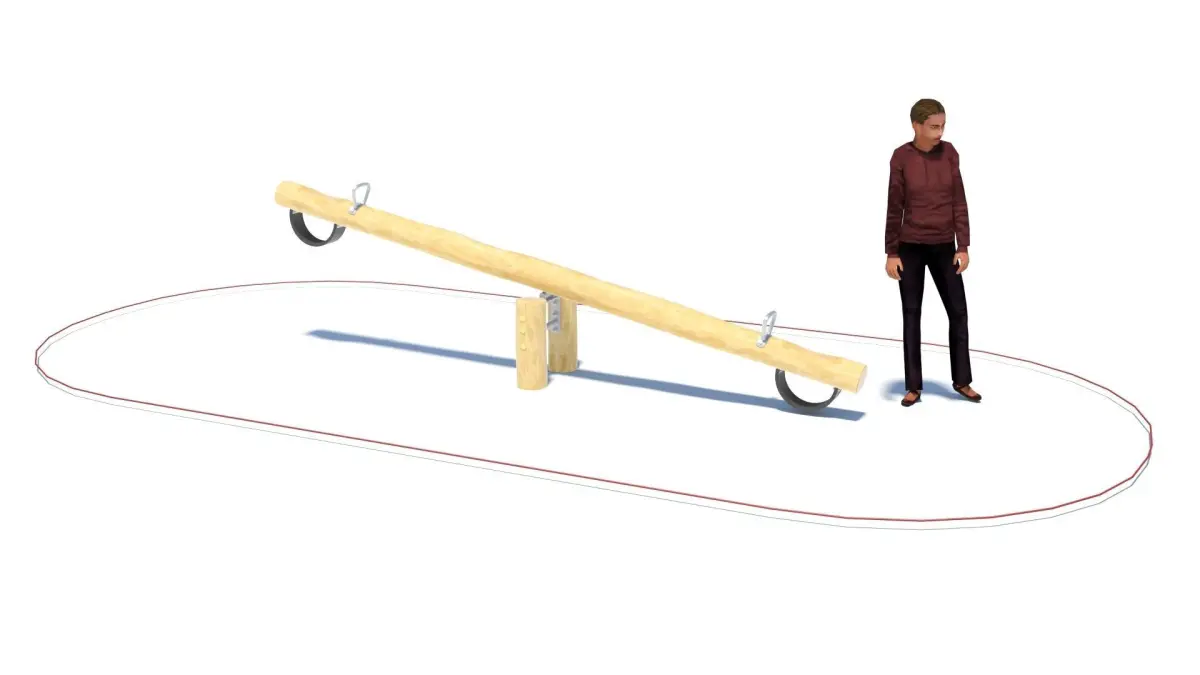 High-poly seesaw for two children, made from Robinia wood. Modelled according to the European standard for (public) playground equipment EN 1176. The file also includes a line that indicates the falling space required according to the standard, to help you place it accurately in your scene.