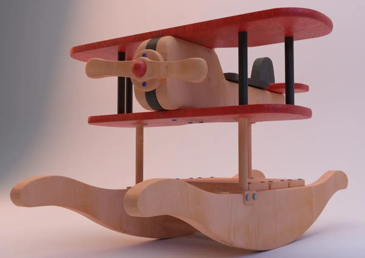 Retro style wooden rocking airplane, separated in each part and with 2K PBR texture. Natively made in blender 2.79. The .blend file contains all the textures packed inside. The model is also available in obj e collada formats. All textures used are inserted in the texture.rar file.