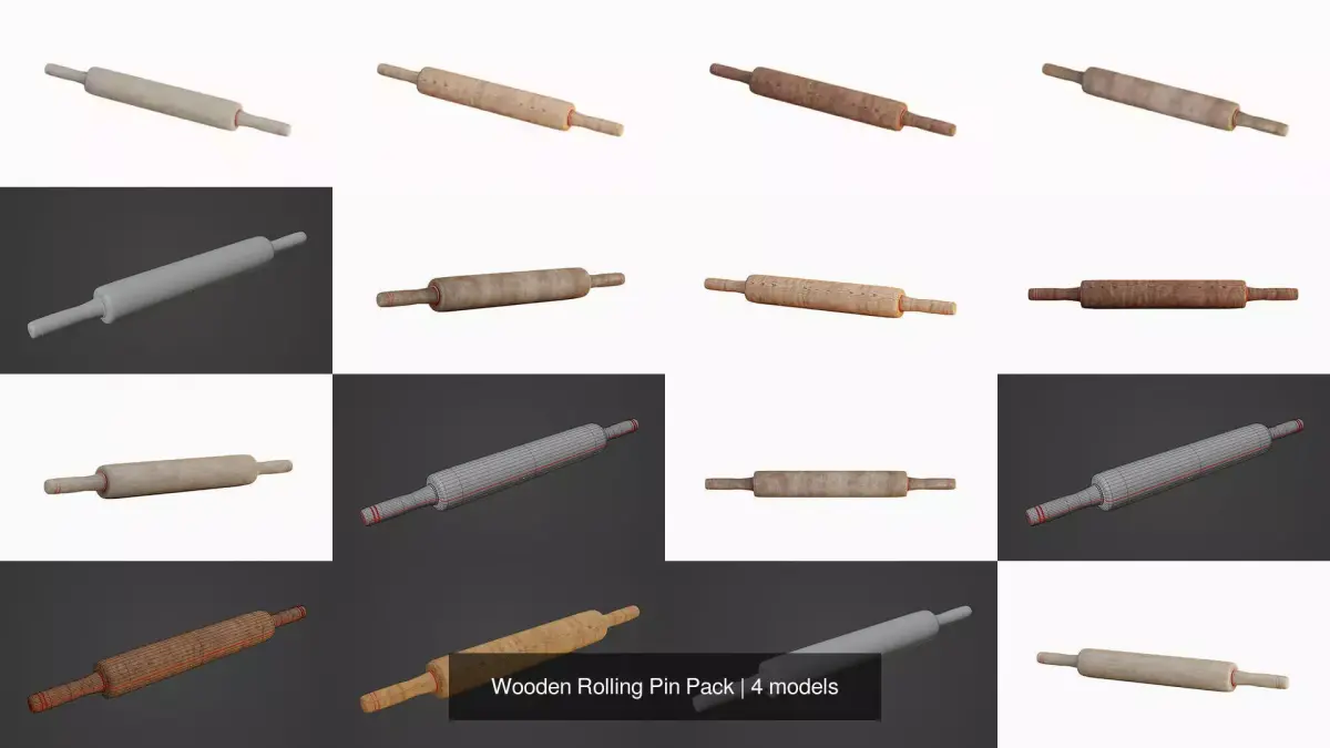 Wooden Rolling Pin Pack ( Collection ) – Low Poly, Game Ready Asset.