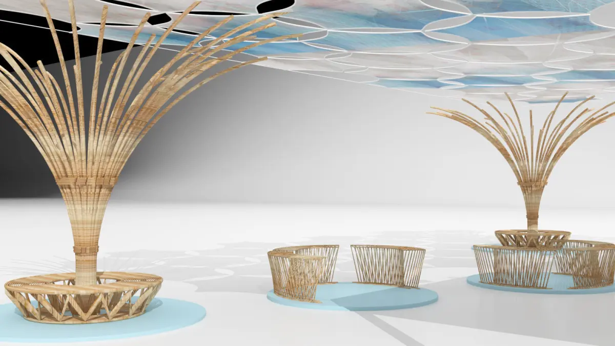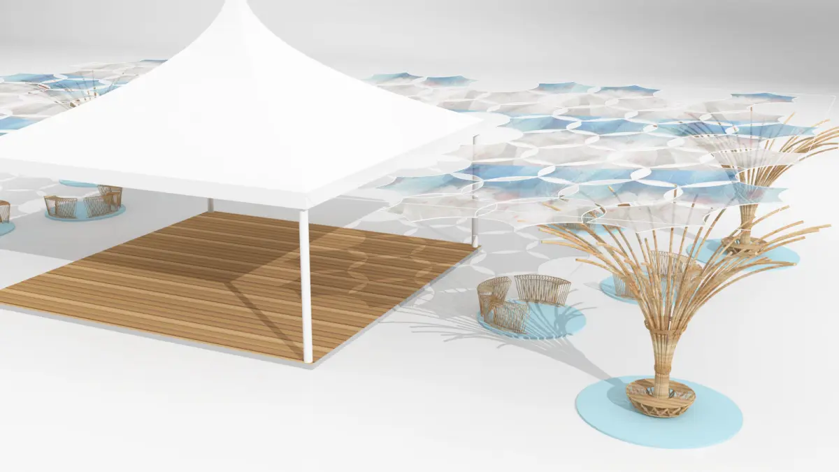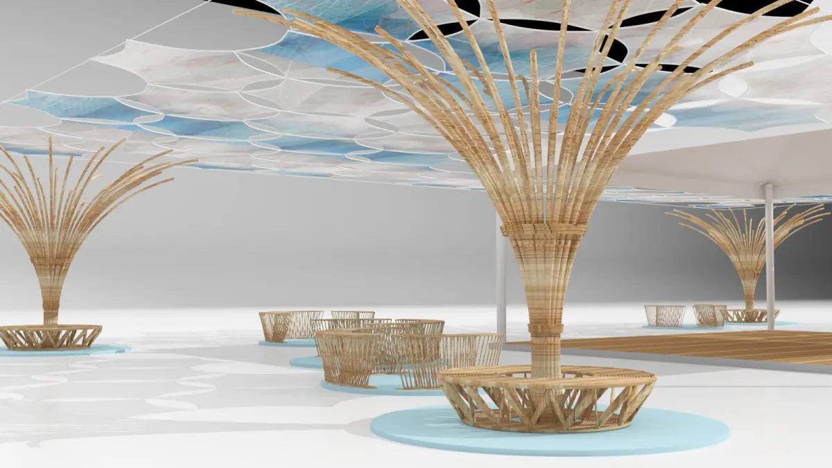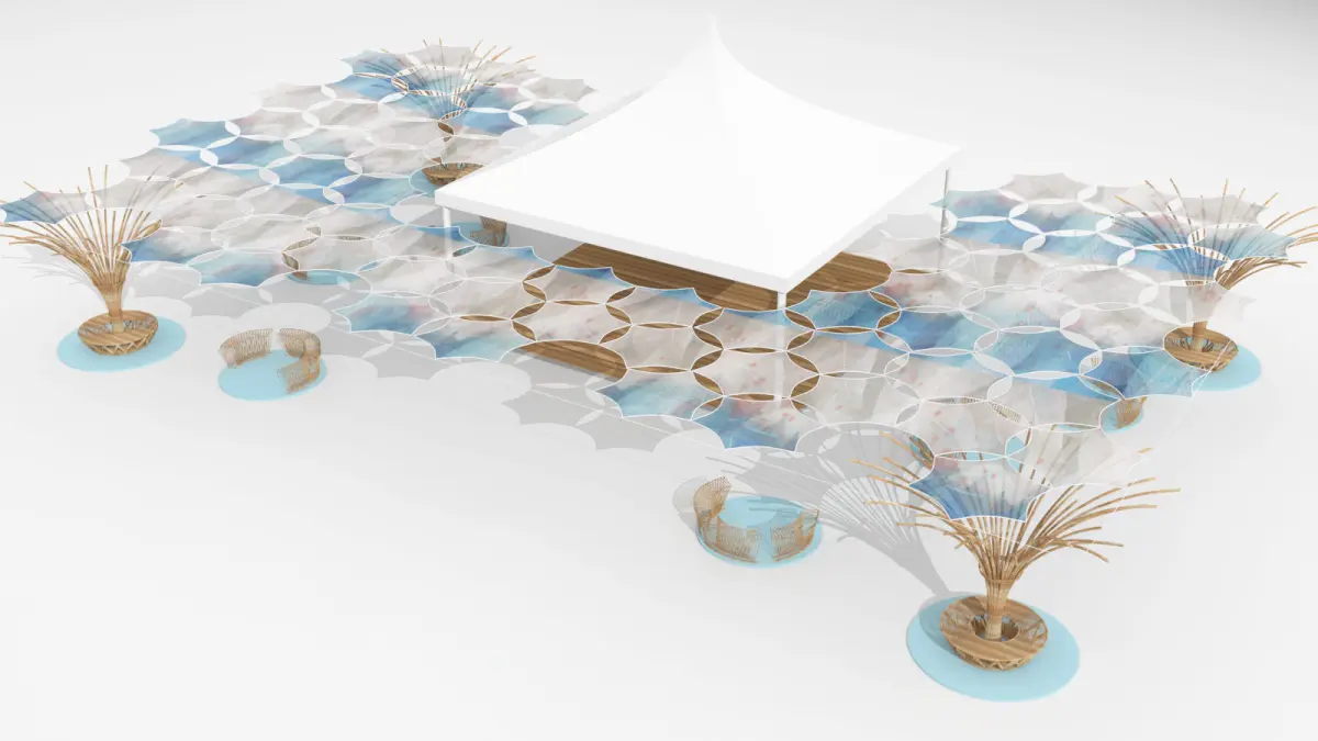 wooden seating with roof and pagoda01 3D model