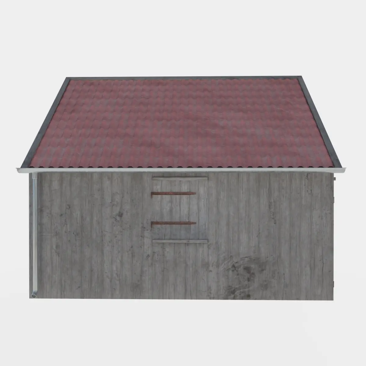 3d low poly model of a wooden barn. The tile is made in 2 colors - red and orange.