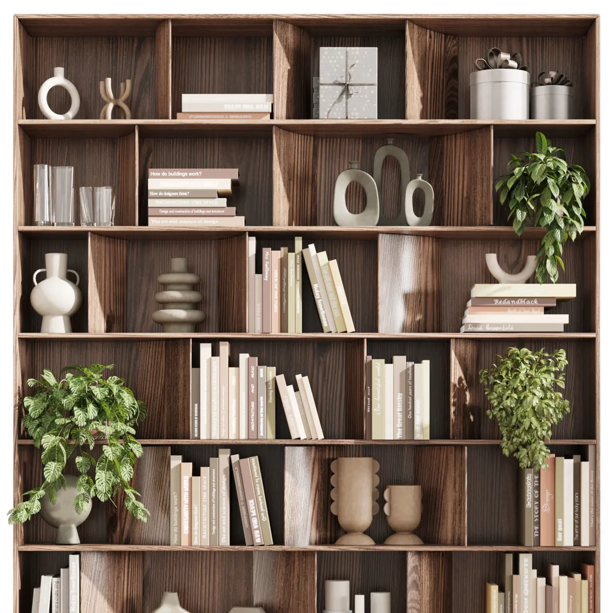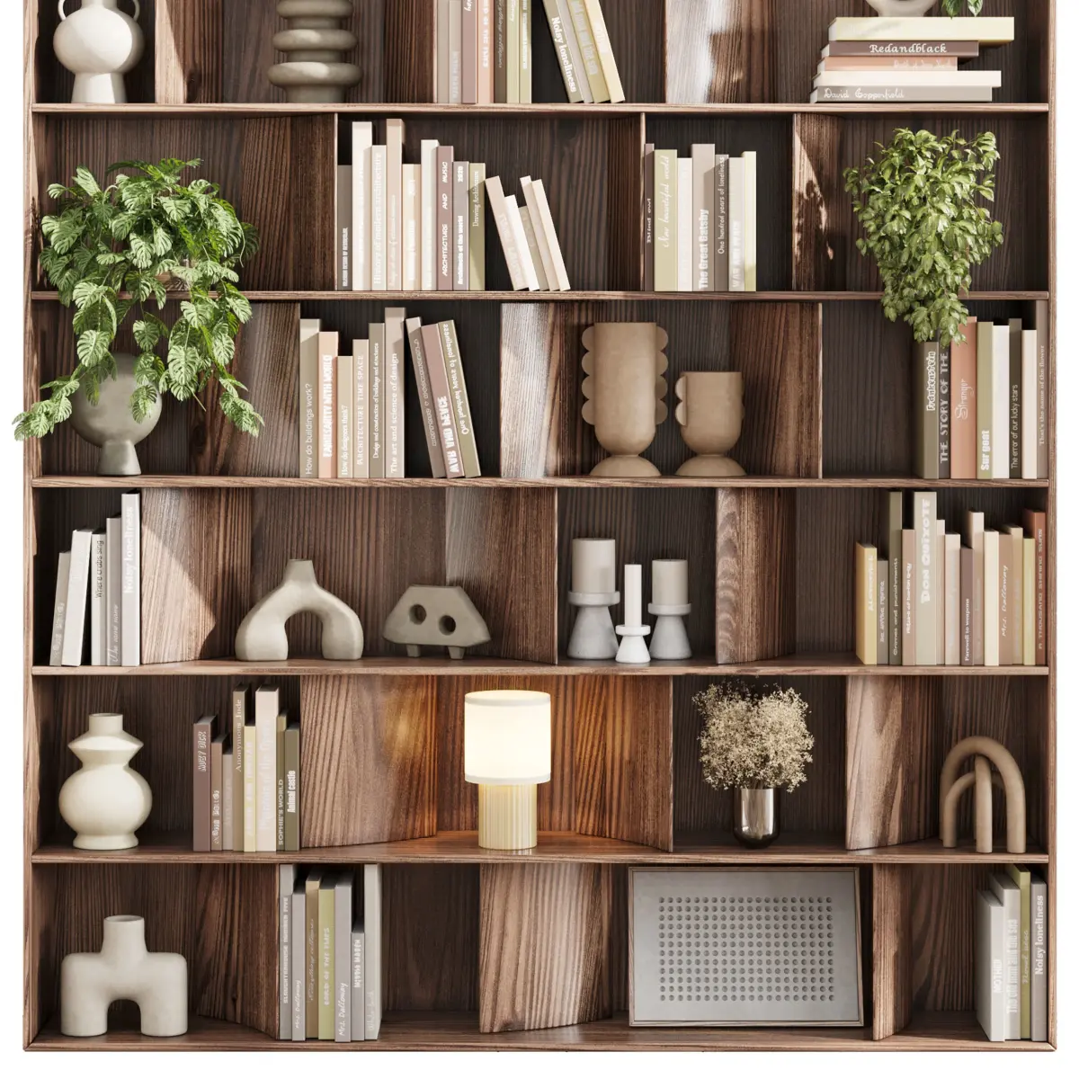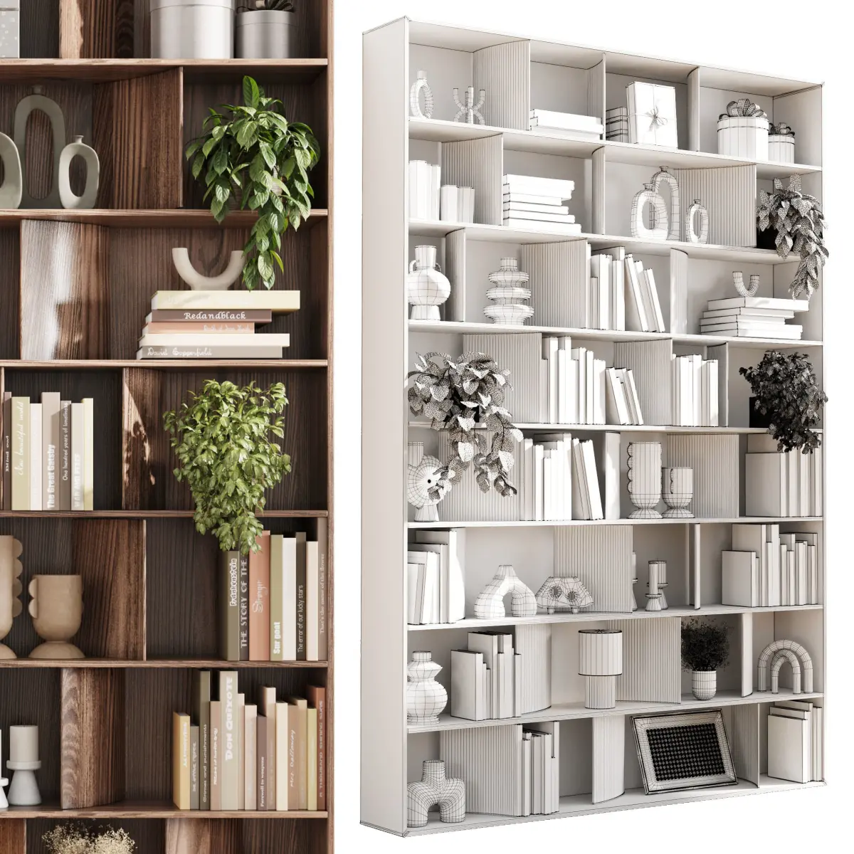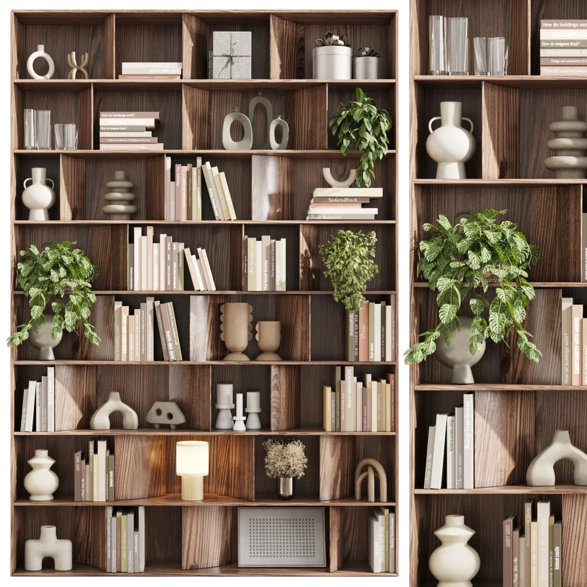 wooden Shelves Decorative With Plants and Book - Wooden Rack