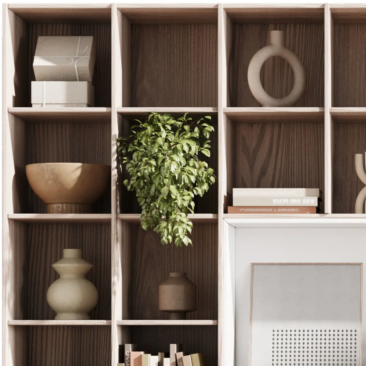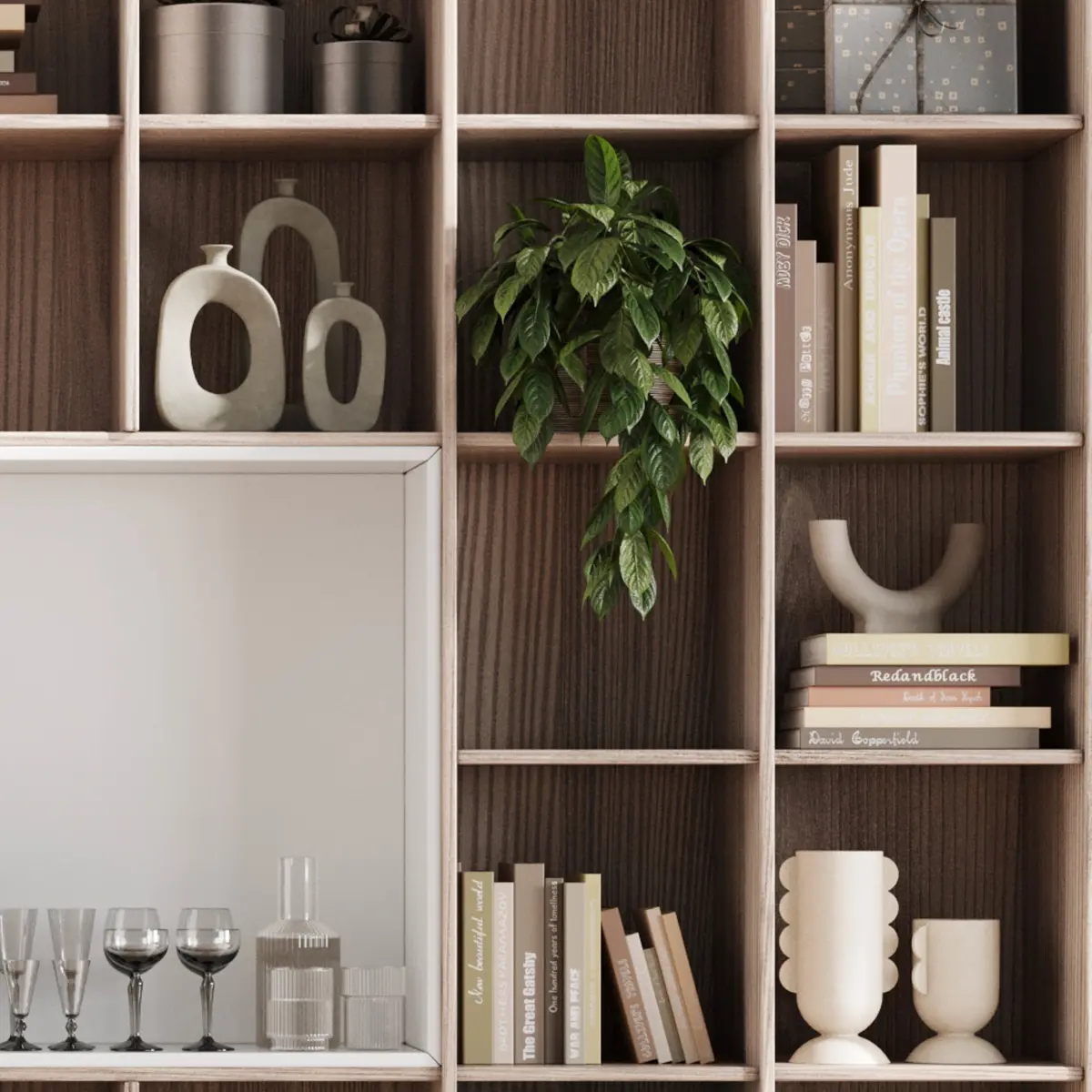 wooden Shelves Decorative With Plants and Book - Wooden Rack 11