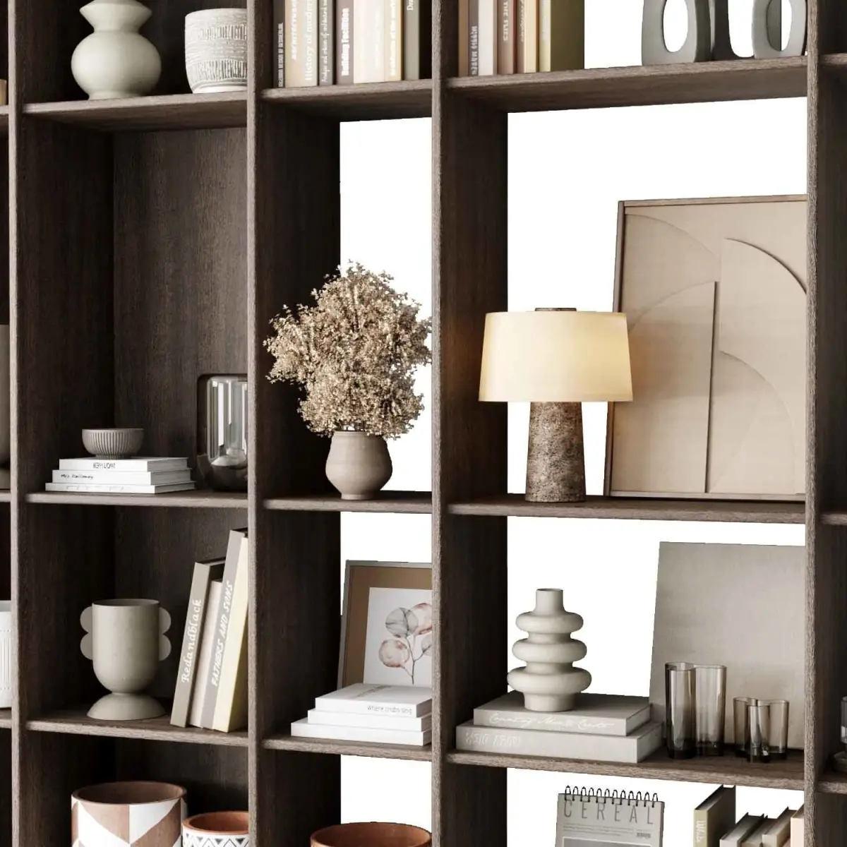 Wooden Shelves Decorative With Plants and Book - Wooden Rack 22
