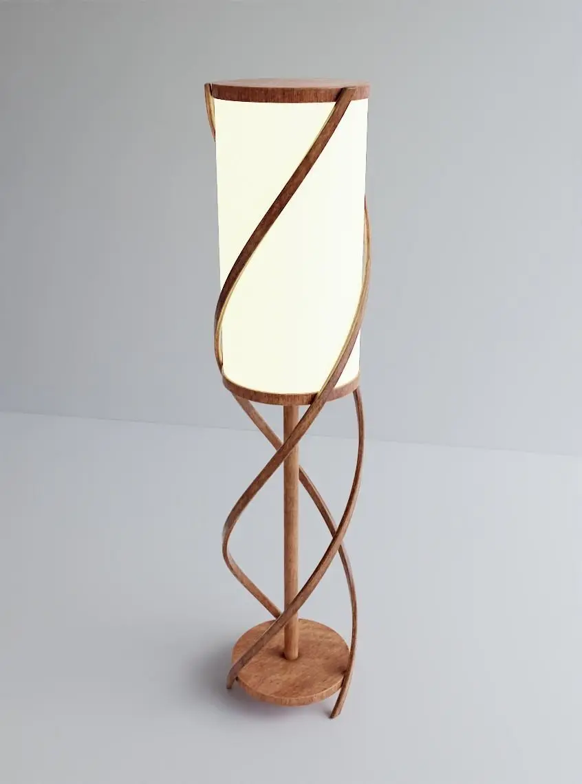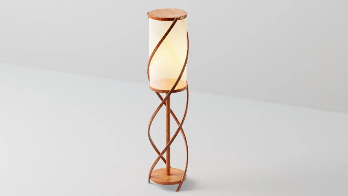 Wooden Spiral Lamp model 1 modeled in Blender 2.83 with PBR textures available.