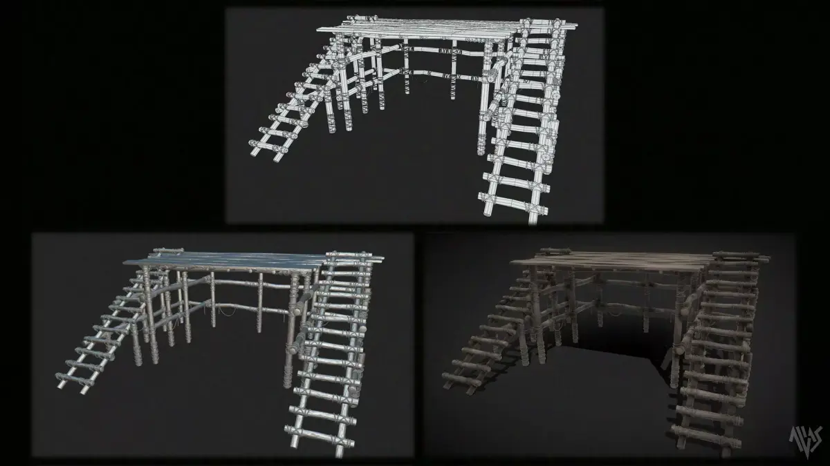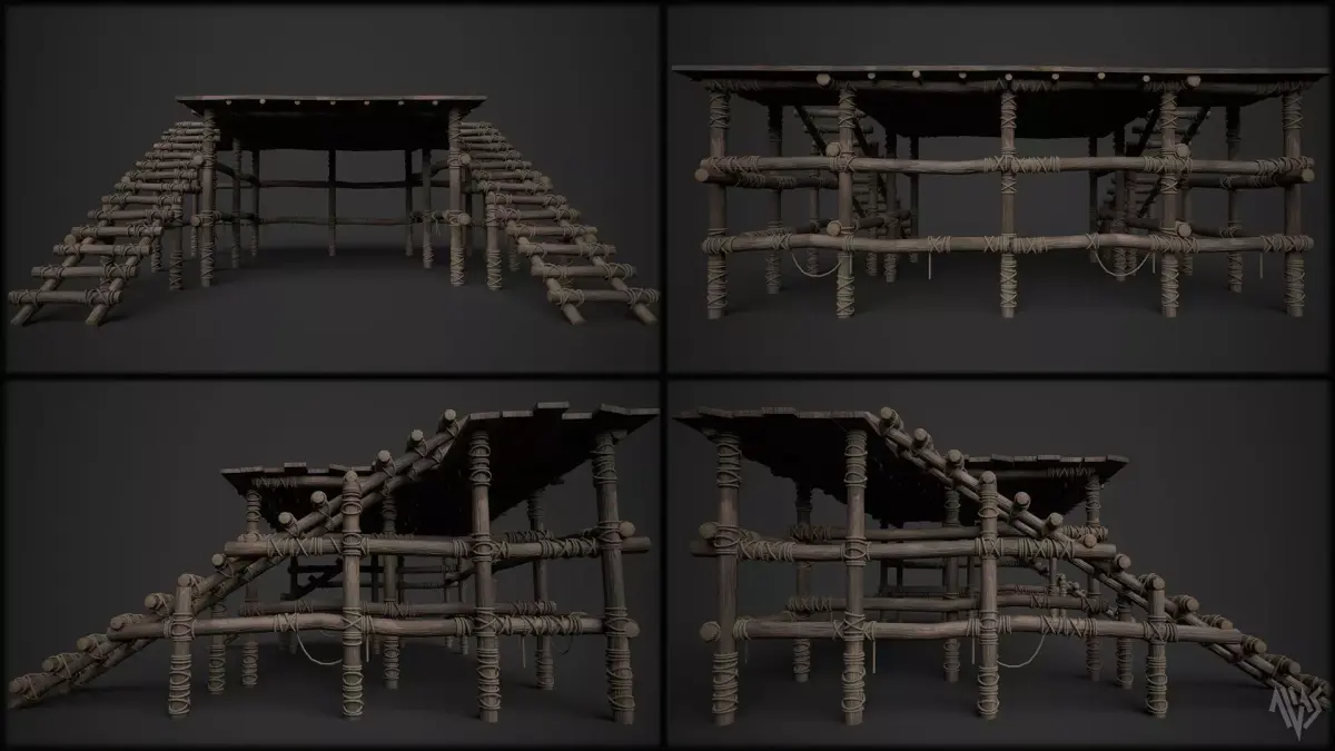 Wooden Stage. Suitable prop for depicting medieval scene for public announcement or performances. Modelled in Maya, textured in Substance Painter. This asset is optimized mid poly and gameready with obj and fbx format selections with 1 material set and selections of 4k and 8k png textures included in the additional files with unreal packed textures.