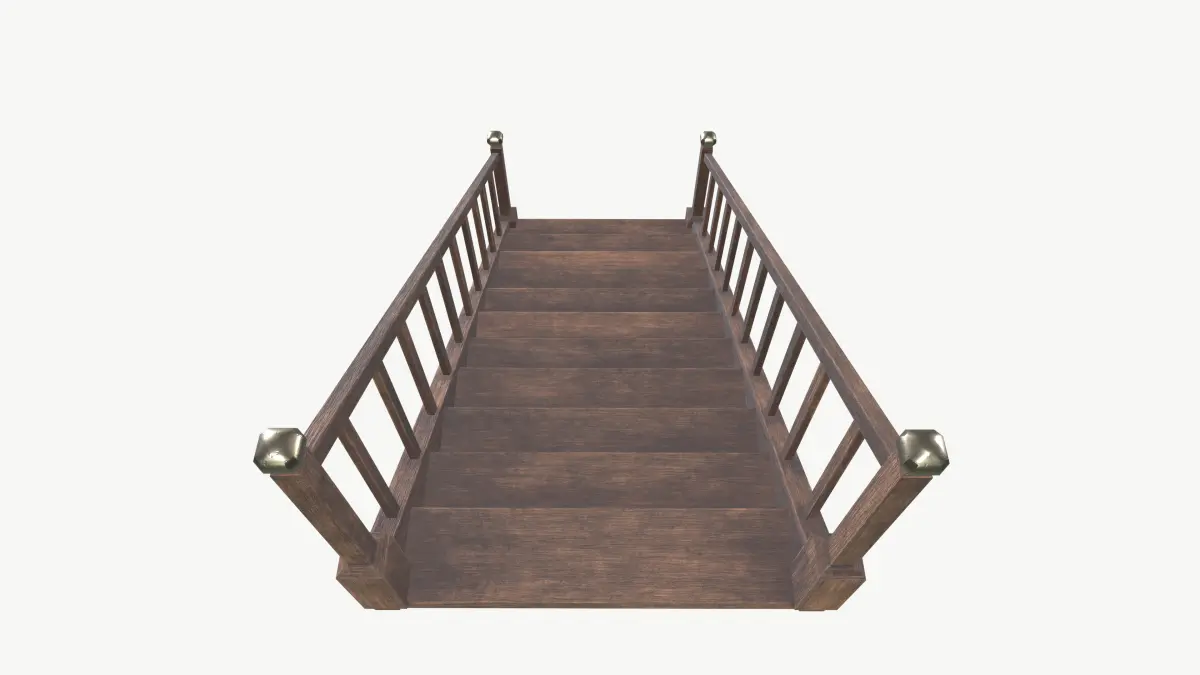 - The wooden stairs are meticulously modeled to reflect the elegance and warmth of traditional woodwork.