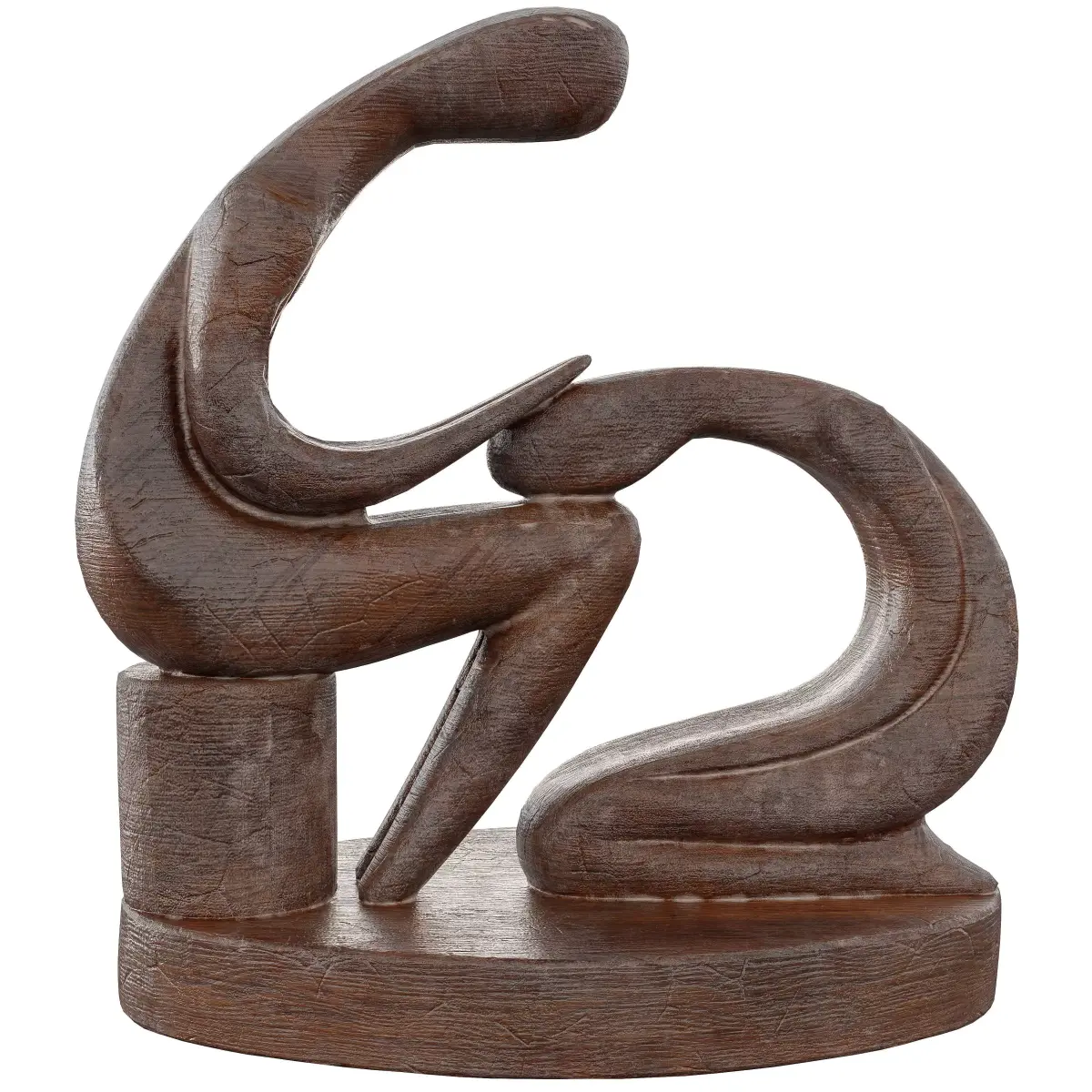 A minimalist wood statue with soft, human‑inspired forms that conveys calm, empathy, and contemplation. The surface shows realistic wood grain and hand‑carved breakups, making it ideal as an interior accessory for archviz renders, cinematic shots, and real‑time scenes in Unity or Unreal. The clean silhouette fits modern, Japandi, Scandinavian, and rustic spaces and looks good under a wide range of lighting setups.
