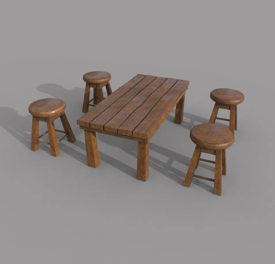 There are 2 (2K) materials for stool and table.