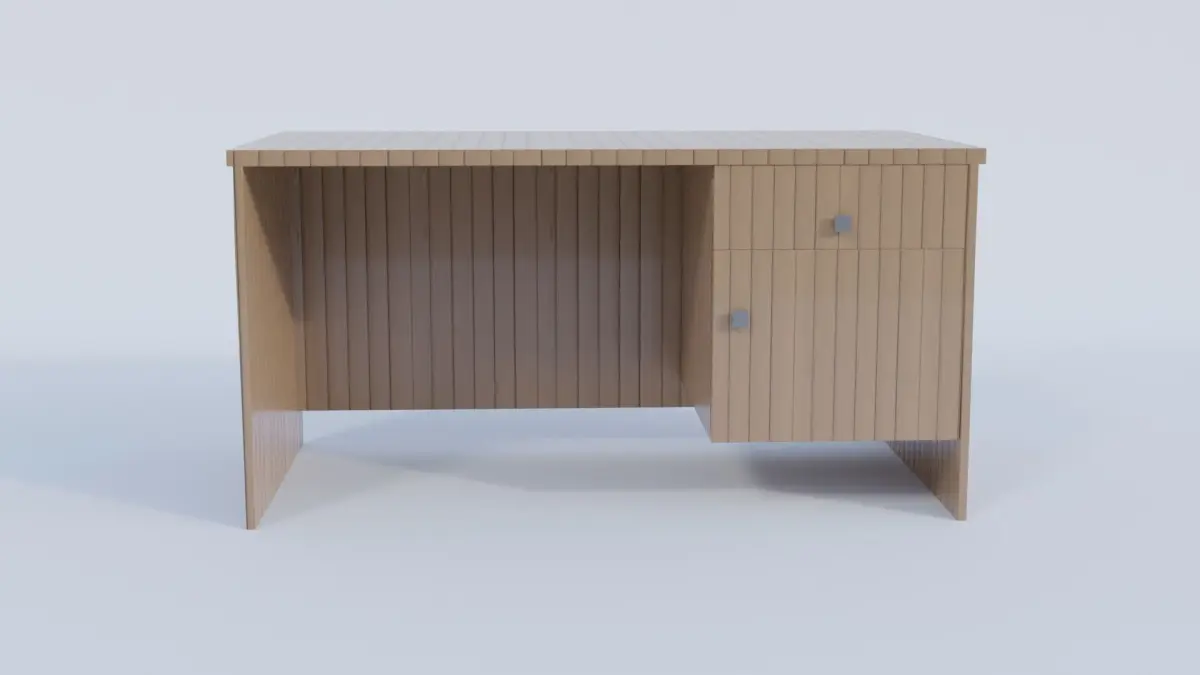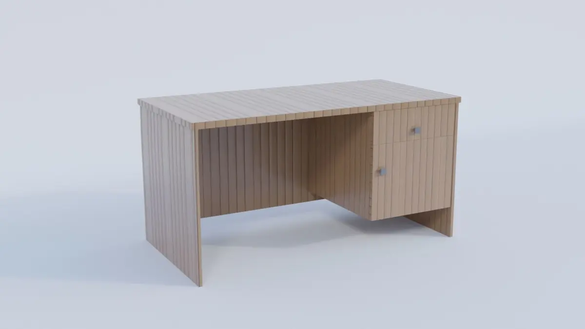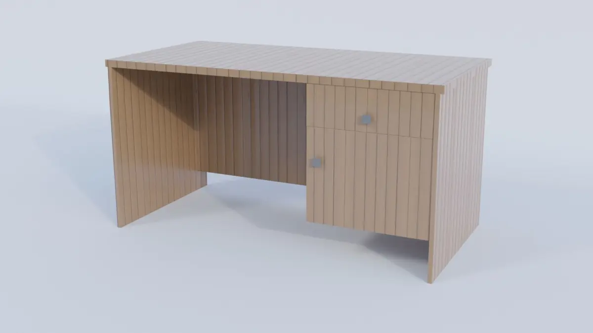 A model of a wooden table that can be used as a study table, computer table, or a general purpose table. Model comes with a drawer and a shelf. The shelf door has the rotation axis-locked, so it will only rotate in the appropriate manner. The drawer and shelf door are separate objects from the table. The model contains 330 faces.The model comes in:.obj.fbx.daeThe model has non-overlapping unwrapped UVs and pbr textures.