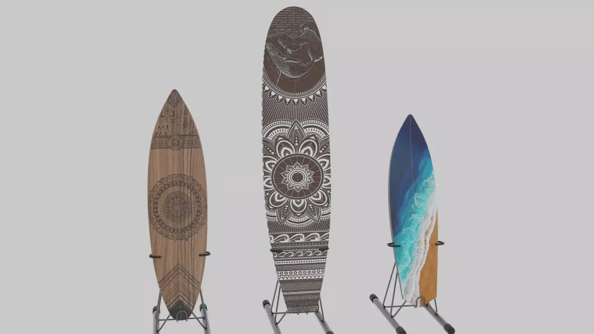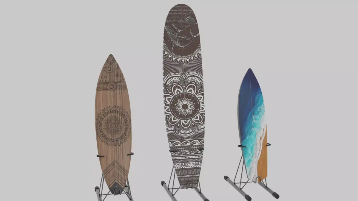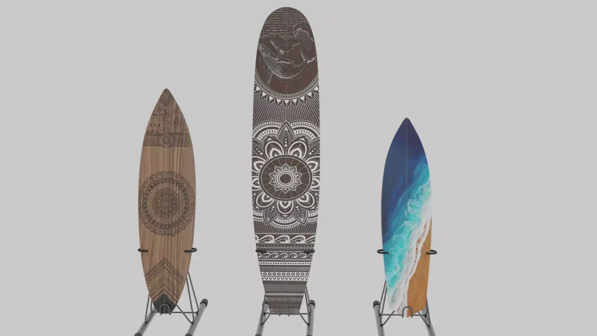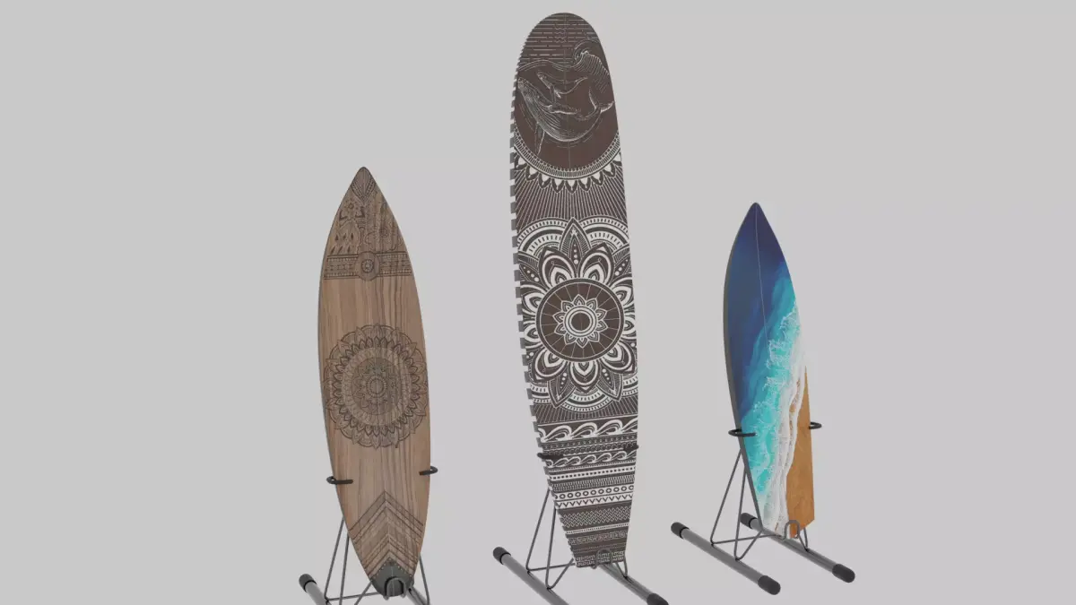 Wooden Surfboard with 3 modelled and texturized on Blender and rendered on Cycles.