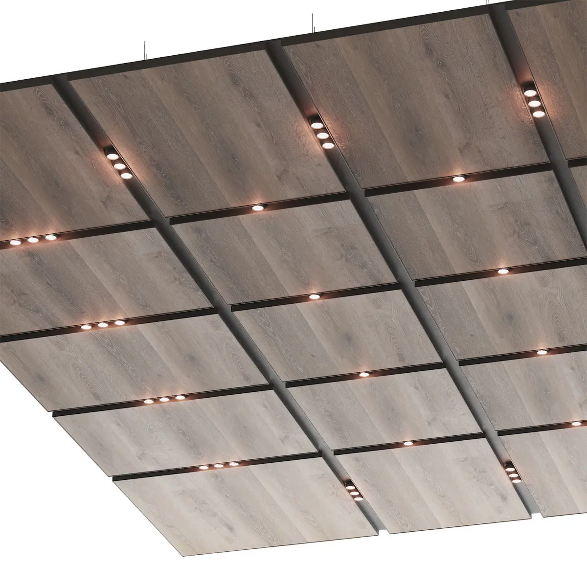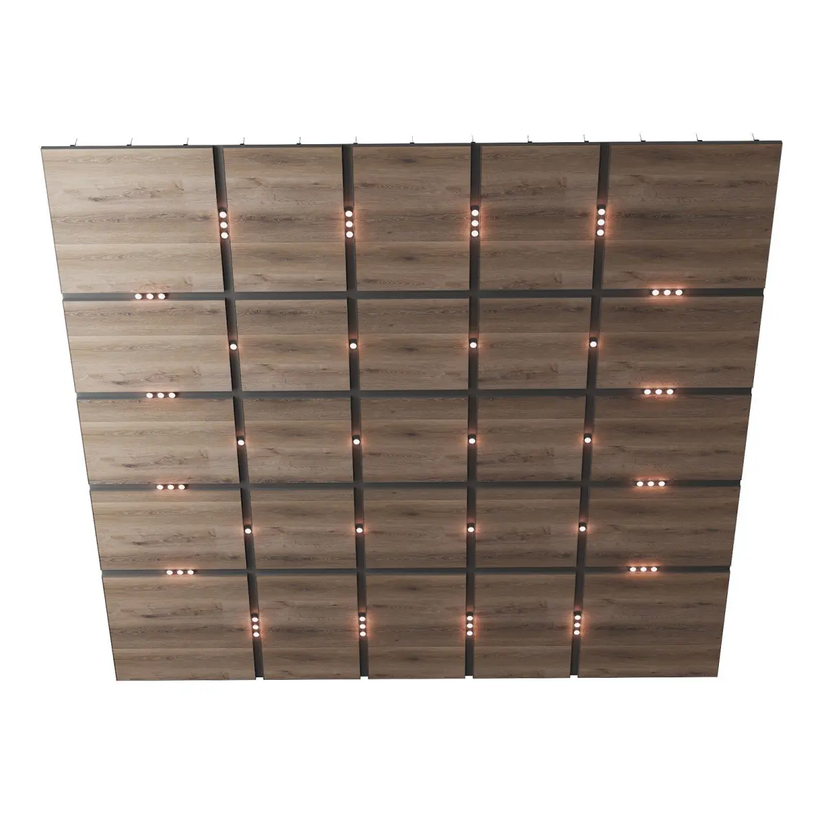 - Wooden suspended ceiling with lighting. The size of the ceiling fragment is 6x8m.