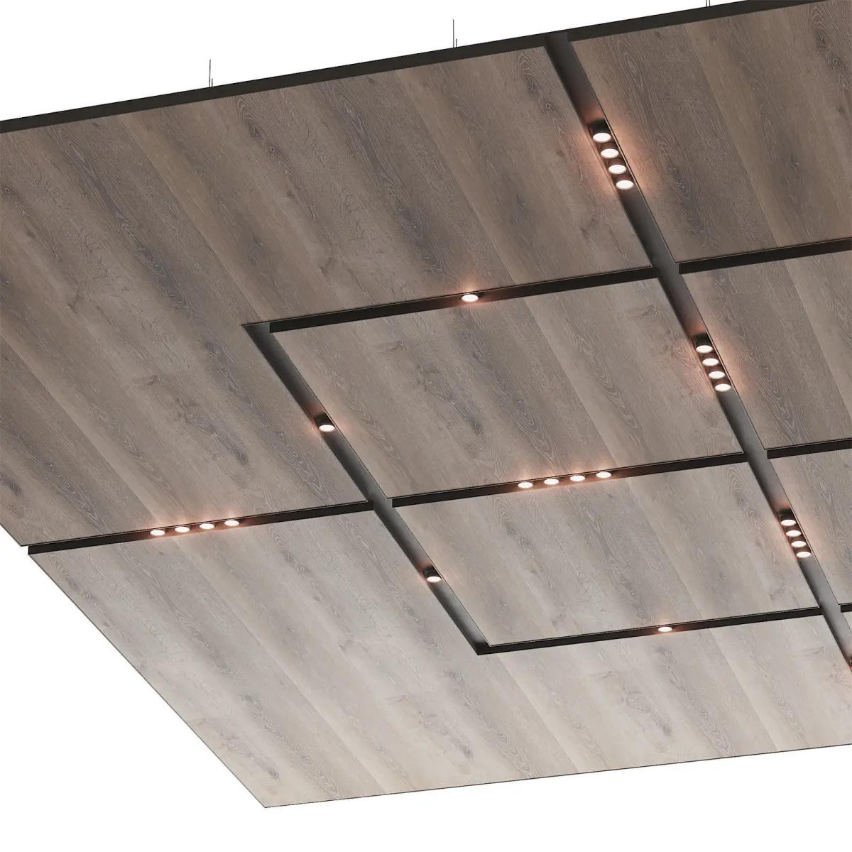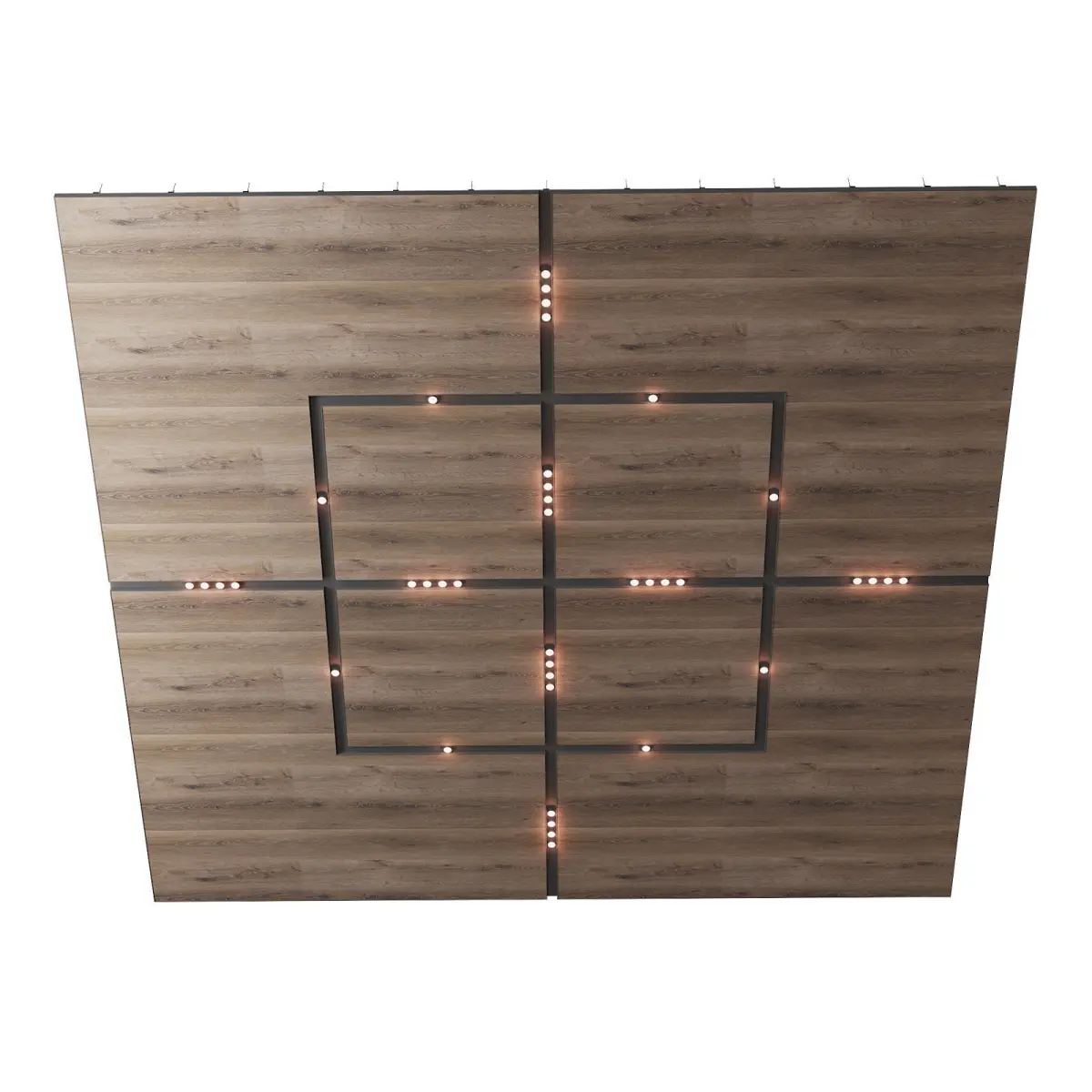 - Wooden suspended ceiling with lighting. The size of the ceiling fragment is 6x8m.
