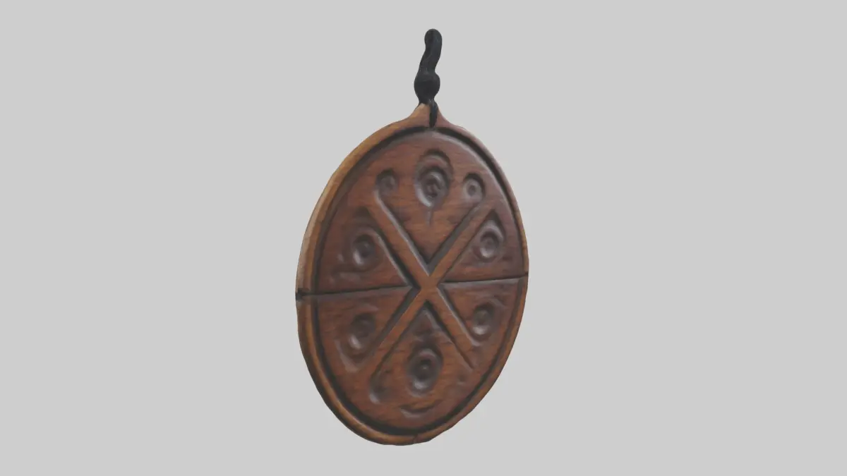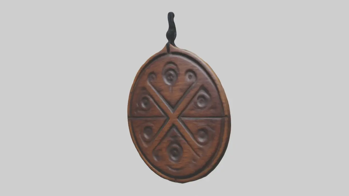Holzamulett, 3D-Modell, Fantasy, Mittelalter, mystisch, rustikal, FBX, OBJ, STL, GLB, USDZ, BLEND