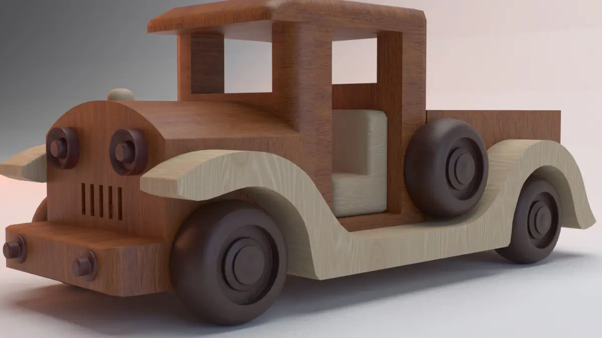 Here is an example of a wooden toy car inspired by the 1920s design. All parts of the machine are divided and individually personable. The .blend file contains all the textures used. For other software unpack the archive named Textures.rar