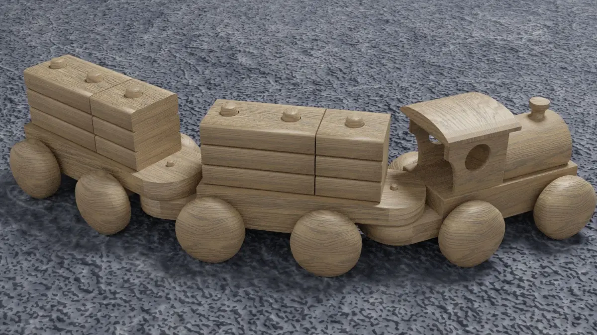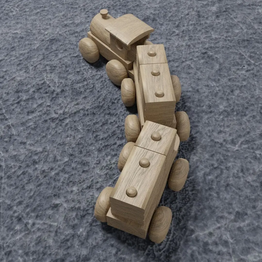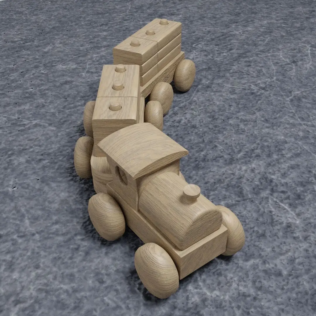 This Wooden toy trains are toy trains that run on wheels of the rolling stock. While this train is made mainly of wood, the engines and cars connect to each other using wood hooks, and wooden wheels mounted. This train is made to resemble anthropomorphical, fictional, and prototypical railroad equipment. It measures almost 10.5 inches and is 2.11 inches in width. Blocks are removable and each car is removable as well.