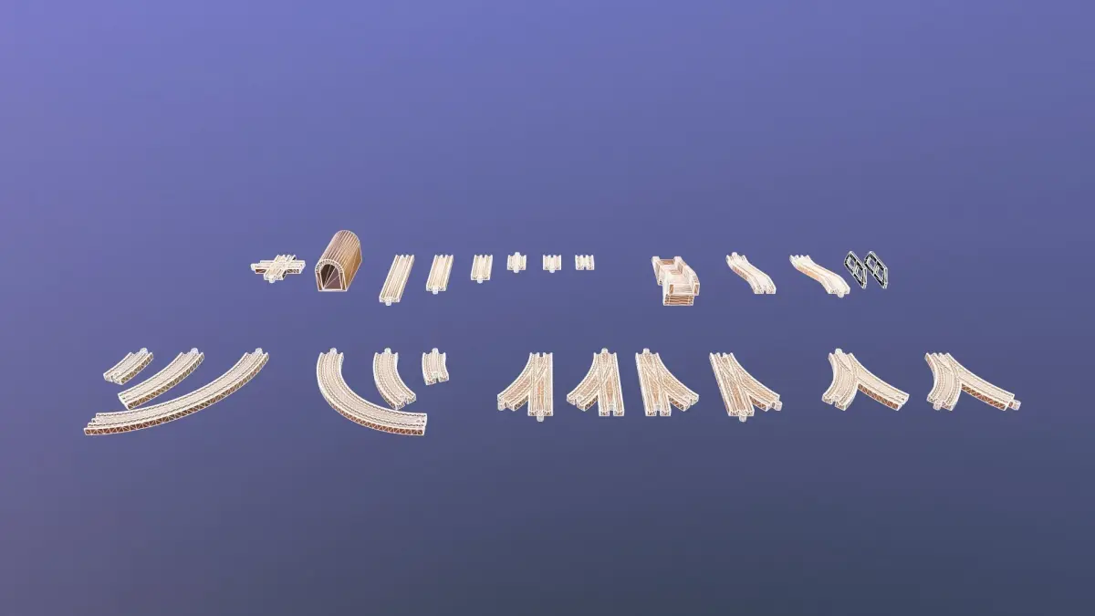 This is a collection of low poly wooden toy train tracks. Combine them to create any track layout you like. Modular pieces that fit together and snap to the grid. Ready for use with Unreal Engine 4 and Unity. Created in blender.