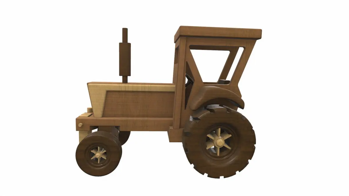 Model wooden tractor toy, which is suitable for interior visualization in combination with other elements.