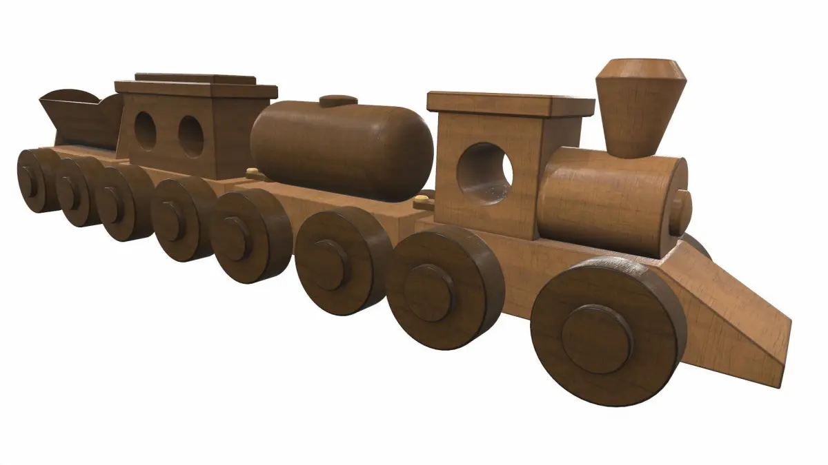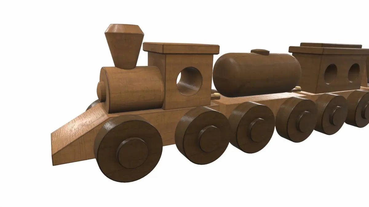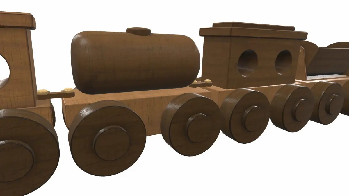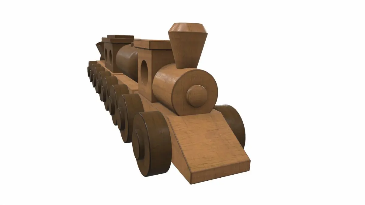 The model wooden train toy is located in zero coordinates. UVW mapping created, all textures are in the zip archiveThe model wooden train toy was created in 3Ds Max and textured in 3D coat. Previews of the model wooden train toy are made in the Marmoset Toolbag program.