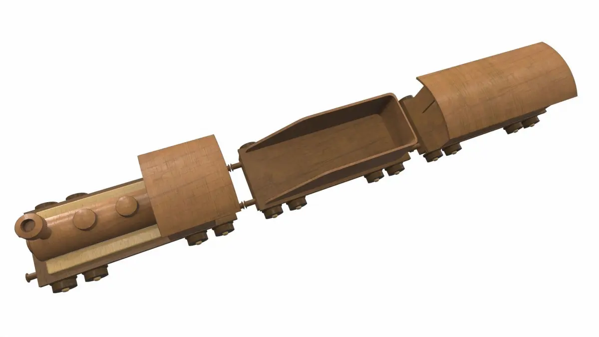 The model wooden train toy is located in zero coordinates. UVW mapping created, all textures are in the zip archiveThe model wooden train toy was created in 3Ds Max and textured in 3D coat. Previews of the model wooden train toy are made in the Marmoset Toolbag program.