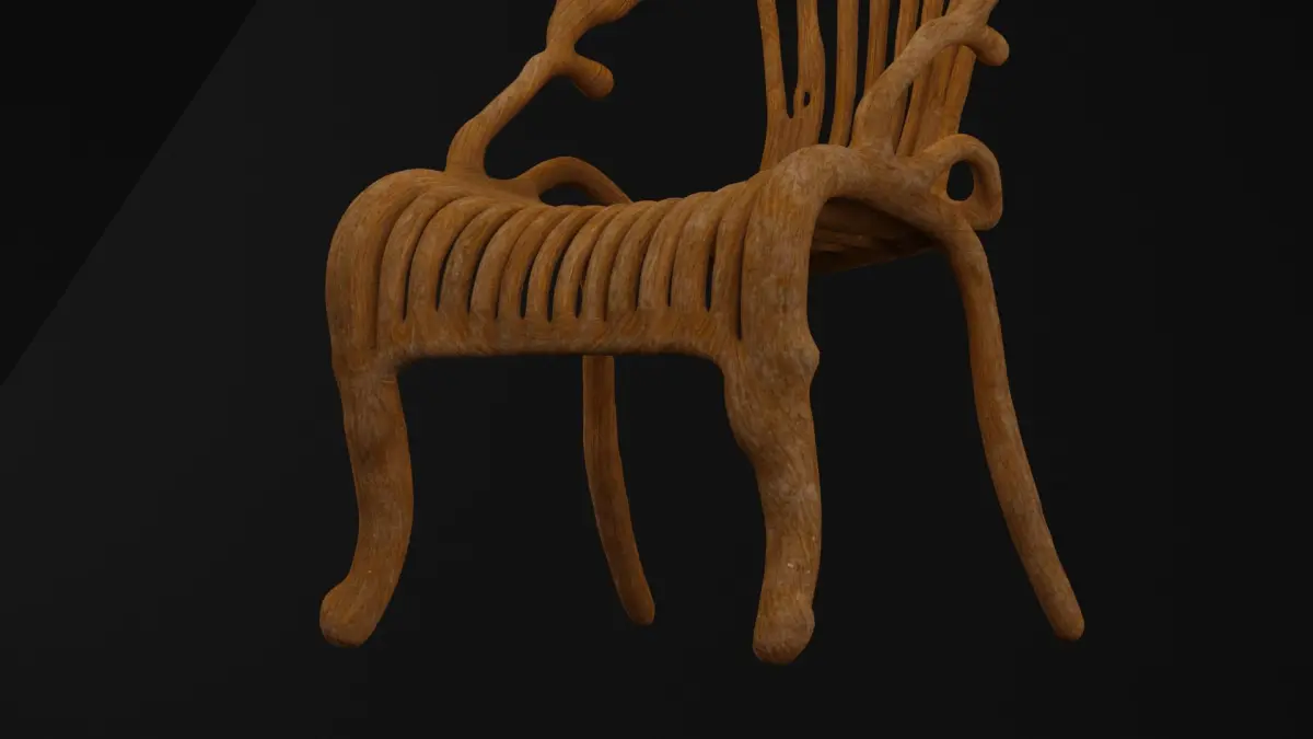 This 3D model showcases a Wooden Tree Chair, merging natural elements with functional design. The chair is carved from a single piece of wood, mimicking the organic flow of a tree trunk with natural knots and grain textures. Its backrest resembles intertwined branches, adding a whimsical and rustic charm, while the seat is smooth and sturdy for comfort. Available in BLEND, OBJ, and DUF formats, this high-poly model with realistic textures is perfect for fantasy, nature-inspired, or eco-friendly design projects.
