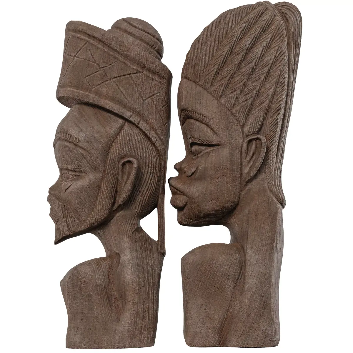 Artistic and Unique Design: The abstract design and striking, expressive features of the sculptures make them a unique and visually compelling asset. They can serve as a powerful decorative element in a variety of settings, from a rustic interior to a cultural art gallery.