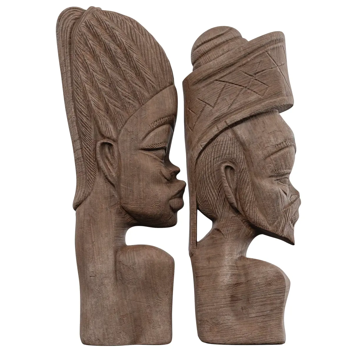 This premium 3D model pack offers a highly detailed and realistic representation of two stylized busts of a couple. Meticulously hand-carved to appear as if from dark, aged wood, the models capture a bold and primal aesthetic. This versatile asset pack is perfect for adding a touch of natural craftsmanship and a unique cultural character to any scene.