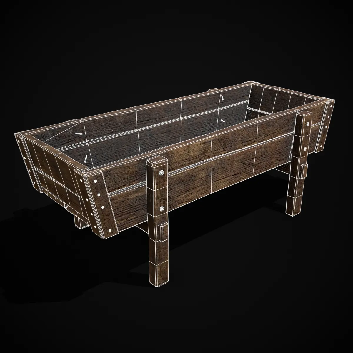 Wooden Trough - 3D Model Files Include FBX and OBJ. Includes PBR Texture in 4096 x 4096. - Maps include : Basecolor, Normal, Roughness, Height and Metallic. All Preview renders were done Marmoset Toolbag 4. Scaled to real world scale. Customer Service Guaranteed. From the Creators at Get Dead Entertainment. Please like and Rate! Follow us on FaceBook and Instagram to keep updated on all our newest models. Model can be used for any purpose except resale or redistribution of the asset if not used in a game, commercial or media project.