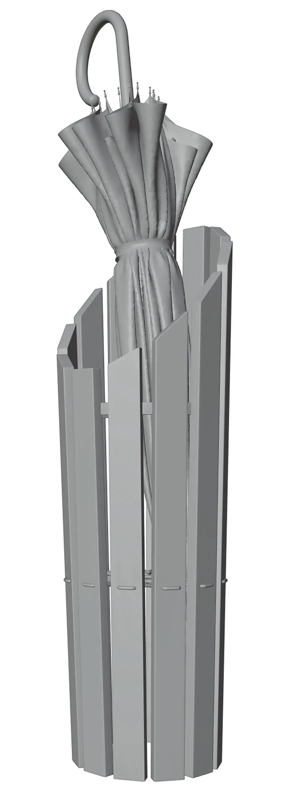 this high quality 3D model includes umbrella holder made of thin wooden boards. A composite umbrella is placed inside. Model prepared for 3d architectural visualisations and other graphic works.